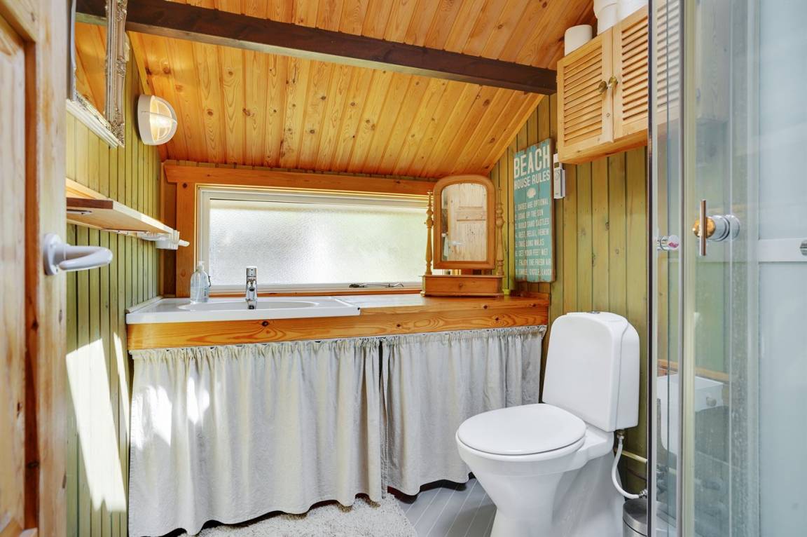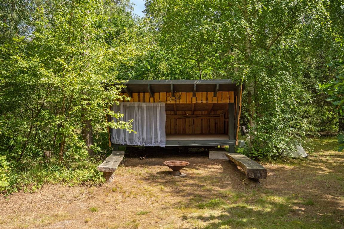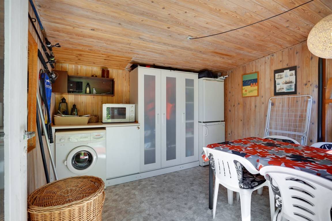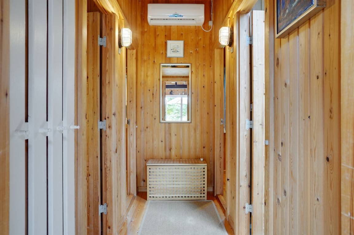 Gemütliches und charmantes Ferienhaus in einem schönen Urlaubsgebiet – nur etwa 200 m vom Wasser und vom hervorragenden und kinderfreundlichen Sandstrand entfernt. Vollkommen ungestörte Lage auf einem tollen Naturgrundstück, das von hohen Bäumen umgeben ist. Schöne überdachte Terrasse, von der aus man die Stille und die herrliche Umgebung genießen kann. Die Innenräume des Hauses sind – in Anbetracht ihres Alters – in einem guten Zustand und haben eine Raumaufteilung, die sich gut für eine Familie eignet.