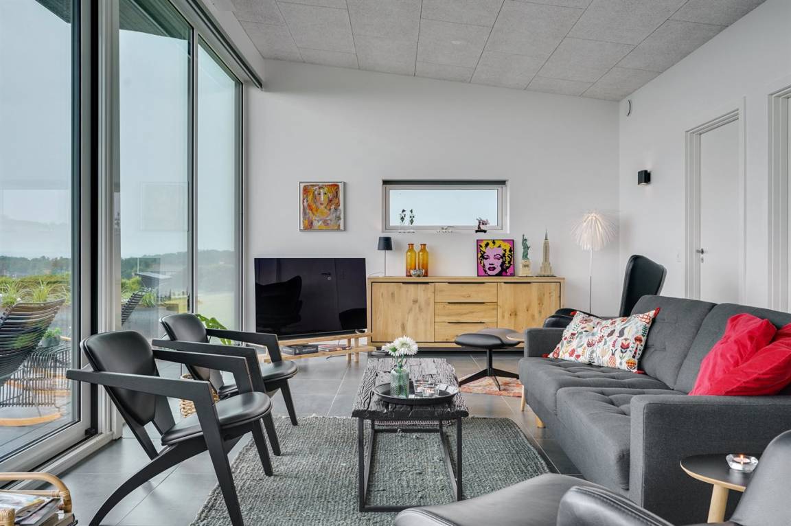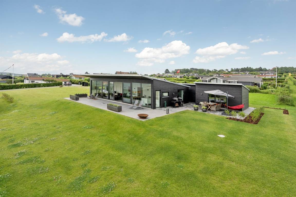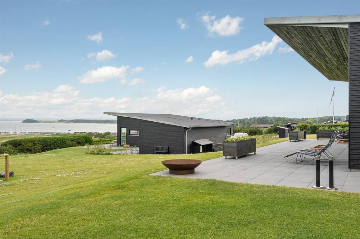 Ein einmalig gut gelegenes und modernes Ferienhaus, 2020 gebaut, mit 180 Grad Panoramablick über das Wasser! Sie können die Aussicht sowohl von der großen Terrasse als auch vom Inneren des Hauses genießen. In einem separaten Gebäude neben dem Haus befindet sich ein Tischtennistisch.