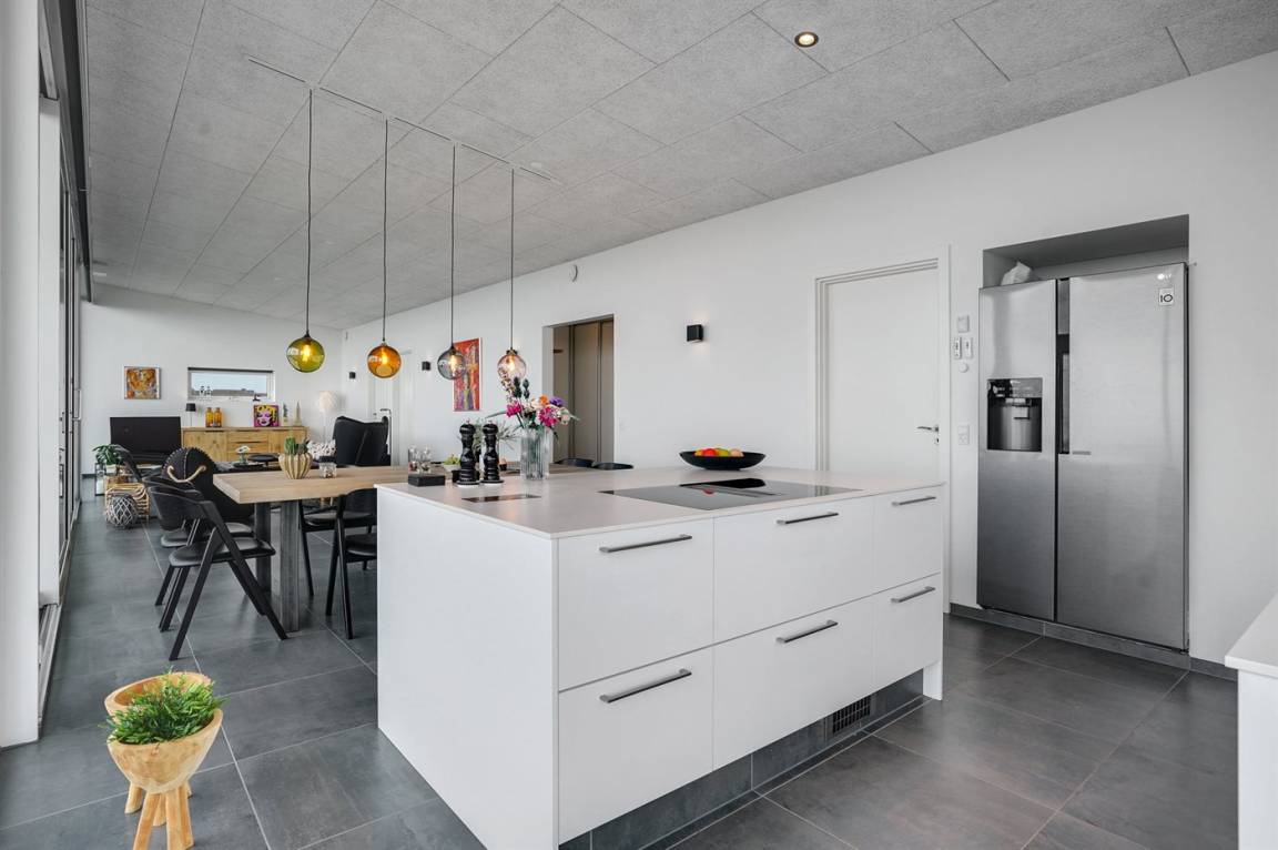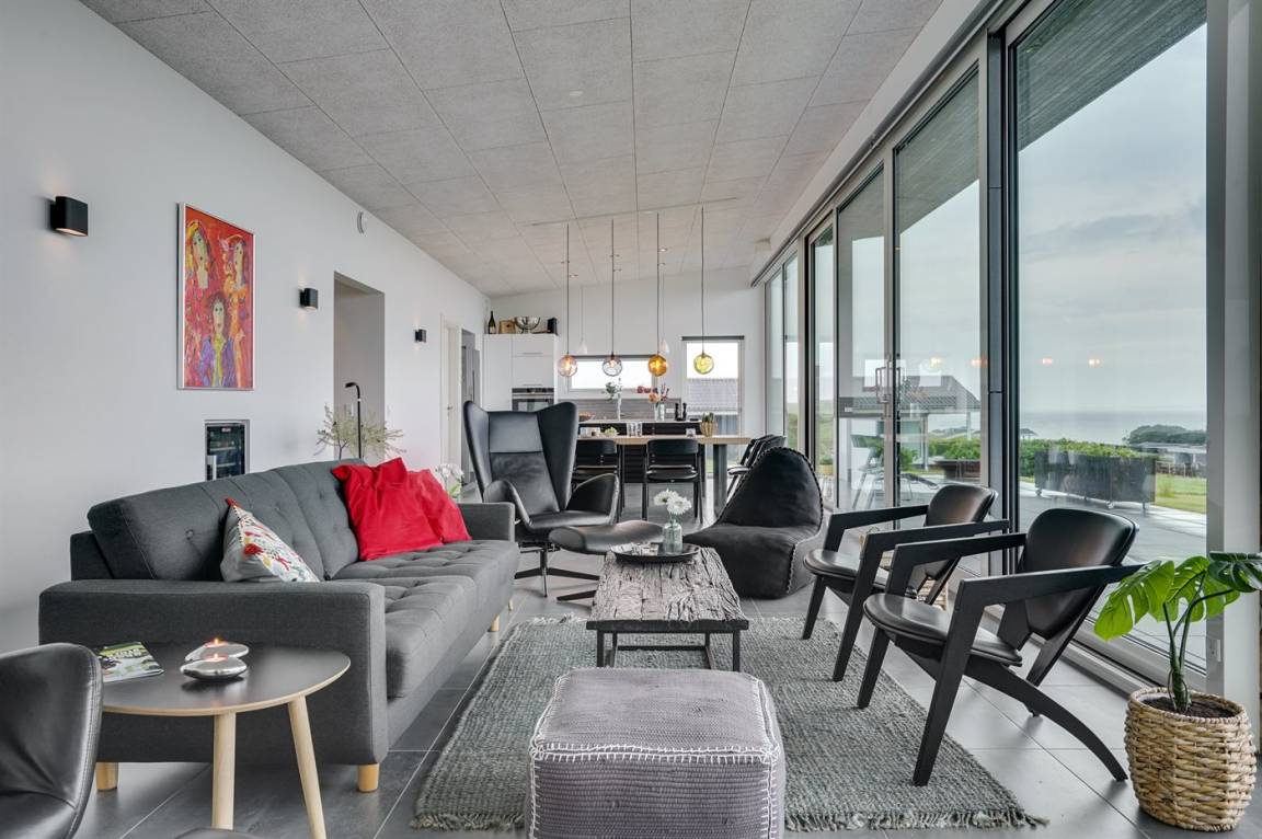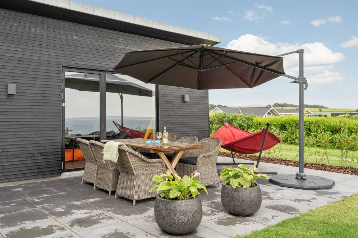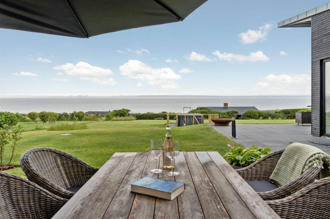 Ein einmalig gut gelegenes und modernes Ferienhaus, 2020 gebaut, mit 180 Grad Panoramablick über das Wasser! Sie können die Aussicht sowohl von der großen Terrasse als auch vom Inneren des Hauses genießen. In einem separaten Gebäude neben dem Haus befindet sich ein Tischtennistisch.
