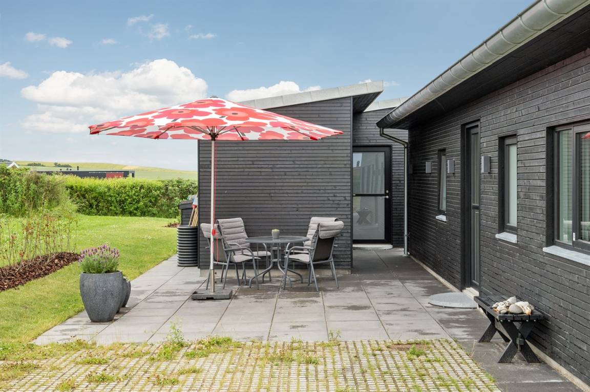 DraußenDie Ferienunterkunft liegt auf einem 1455 m² großen Gartengrundstück. Die Entfernung zum Meer beträgt 200 m. Die nächste Einkaufsmöglichkeit liegt 5000 m entfernt. In einem Abstand von 26400 m gibt es einen Golfplatz. Es steht ein 90 m² Terrassenareal zur Verfügung. Außerdem gibt es 30 m² überdachte Terrasse. Geräteraum.Lagerfeuerstelle.An Sommerabenden sorgt der Außenkamin für eine gemütliche Atmosphäre. Es steht ein Grill zur Verfügung. Es ist ein Ladestecker für Elektroautos installiert. Parkplatz auf dem Grundstück.