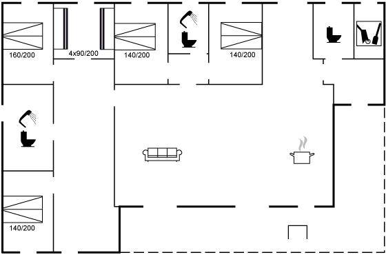 SchlafverhältnisseDie Schlafplätze verteilen sich auf 5 Schlafräume. 8 Schlafplätze in Doppelbetten. 4 Schlafplätze in Etagenbetten. Ferner steht ein Kinderbett zur Verfügung.