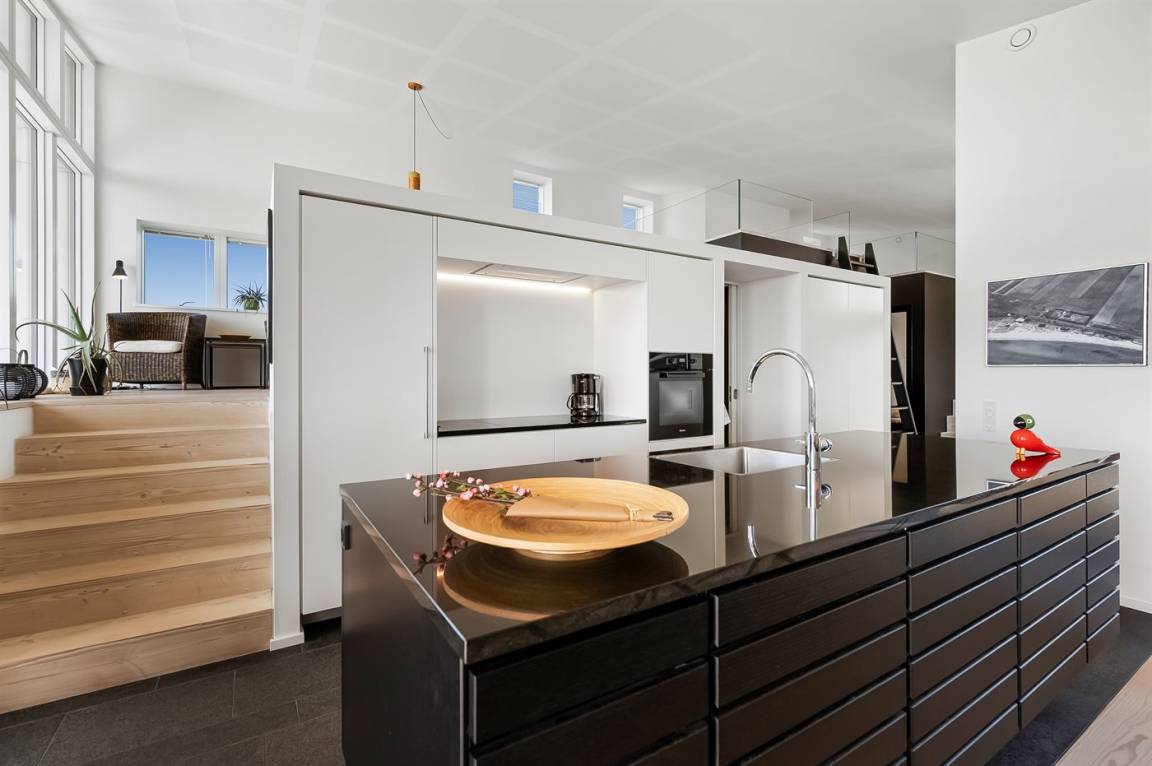 KücheDie Küche ist mit Kühlschrank ausgestattet. Außerdem gibt es 4 Induktions-Kochzonen, Umluftofen, Mikrowelle sowie Geschirrspüler.