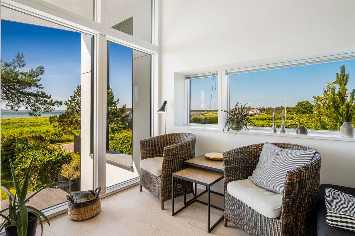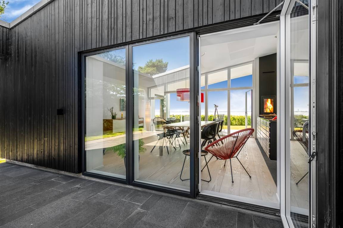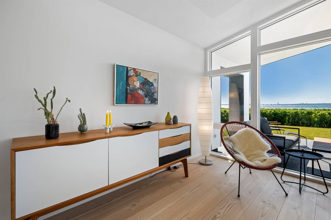 Willkommen in Skødshoved und in diesem einzigartigen Ferienhaus aus dem Jahr 2017 – ursprünglich als Ganzjahresresidenz konzipiert, mit Fokus auf Qualität und besonderen Details, maßgeschneidert nach den Bedürfnissen des Eigentümers.