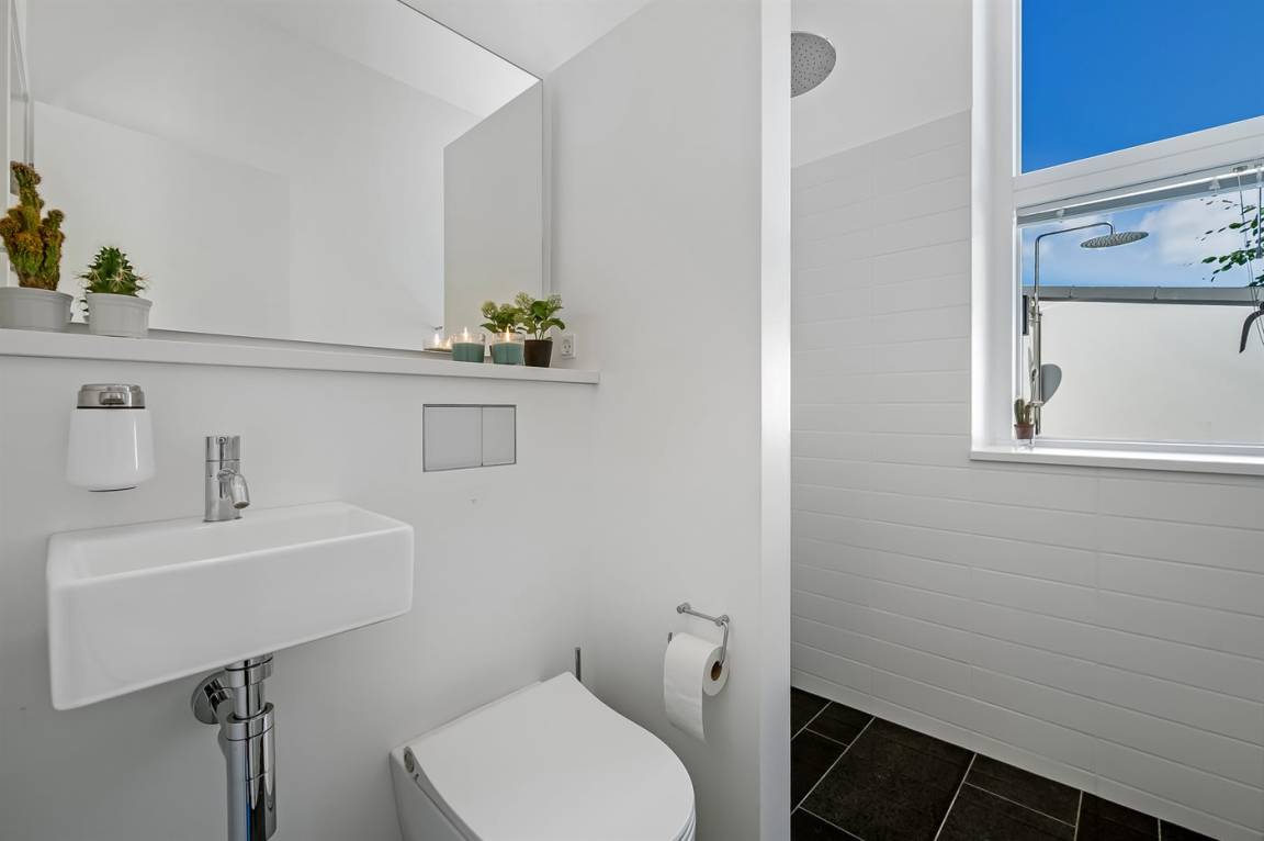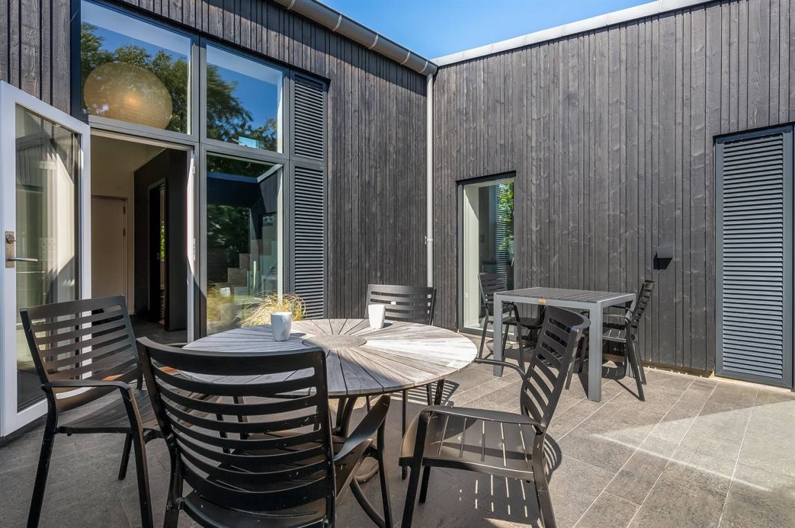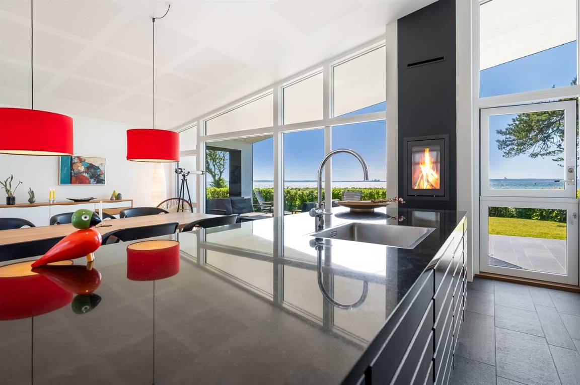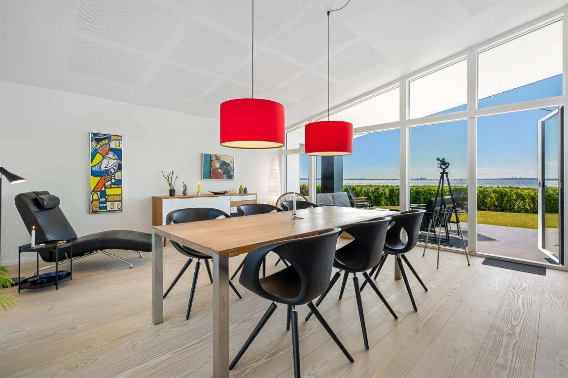 Willkommen in Skødshoved und in diesem einzigartigen Ferienhaus aus dem Jahr 2017 – ursprünglich als Ganzjahresresidenz konzipiert, mit Fokus auf Qualität und besonderen Details, maßgeschneidert nach den Bedürfnissen des Eigentümers.