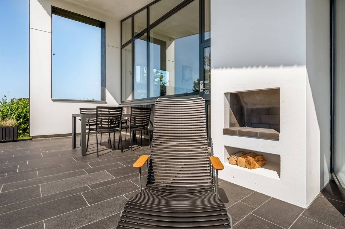 DraußenDie Ferienunterkunft liegt auf einem 720 m² großen Gartengrundstück. Das Grundstück ist eingezäunt. Die Entfernung zum Meer beträgt 30 m. Es gibt einen Badesteg in der Nähe. Die nächste Einkaufsmöglichkeit liegt 3000 m entfernt. In einem Abstand von 8000 m gibt es einen Golfplatz. Es steht ein offenes Terrassenareal zur Verfügung. Außerdem gibt es überdachte Terrasse. Geräteraum. Die Entfernung zu einem Spielplatz beträgt 200 m. Außendusche. An Sommerabenden sorgt der Außenkamin für eine gemütliche Atmosphäre. Es steht ein Grill zur Verfügung. Parkplatz auf dem Grundstück.