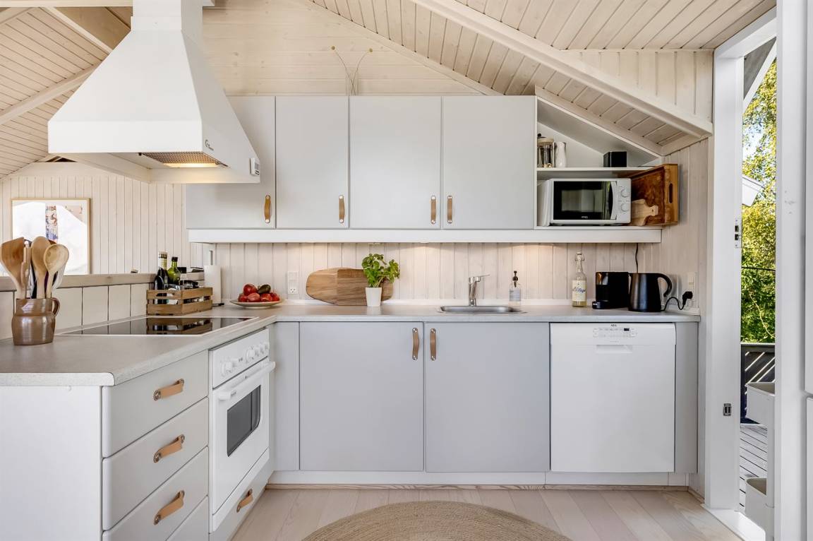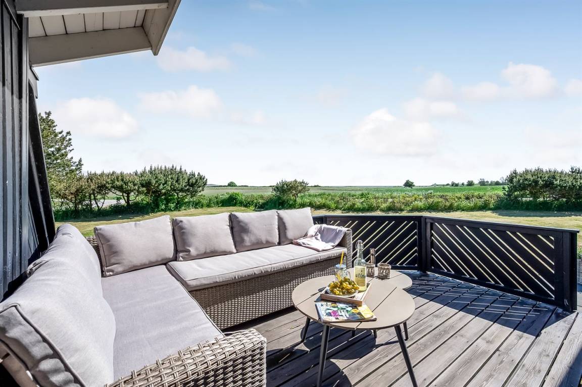 Das Ferienhaus wurde 2024 teilweise renoviert und präsentiert sich hell, modern und mit einer guten Raumaufteilung. Es eignet sich perfekt für eine Familie mit 2–3 Kindern oder eine kleinere Familie, bei der die Großeltern mit in den Urlaub fahren. Es gibt nämlich ein schönes und gut eingerichtetes Gästehaus, das ideal für größere Kinder oder eben für die Großeltern ist. Der Mittelpunkt des Hauses ist die große, schöne Wohnküche – ein perfekter Ort, um die Familie zu versammeln. Von hier habt ihr direkten Zugang zur herrlichen Terrasse, die teilweise überdacht ist. Es ist ganz leicht, ein windgeschütztes Plätzchen in der Sonne zu finden. Von der Terrasse habt ihr außerdem einen guten Blick auf den Garten, in dem die Kinder spielen können, während die Erwachsenen eine Tasse Kaffee oder ein Glas Wein genießen.
