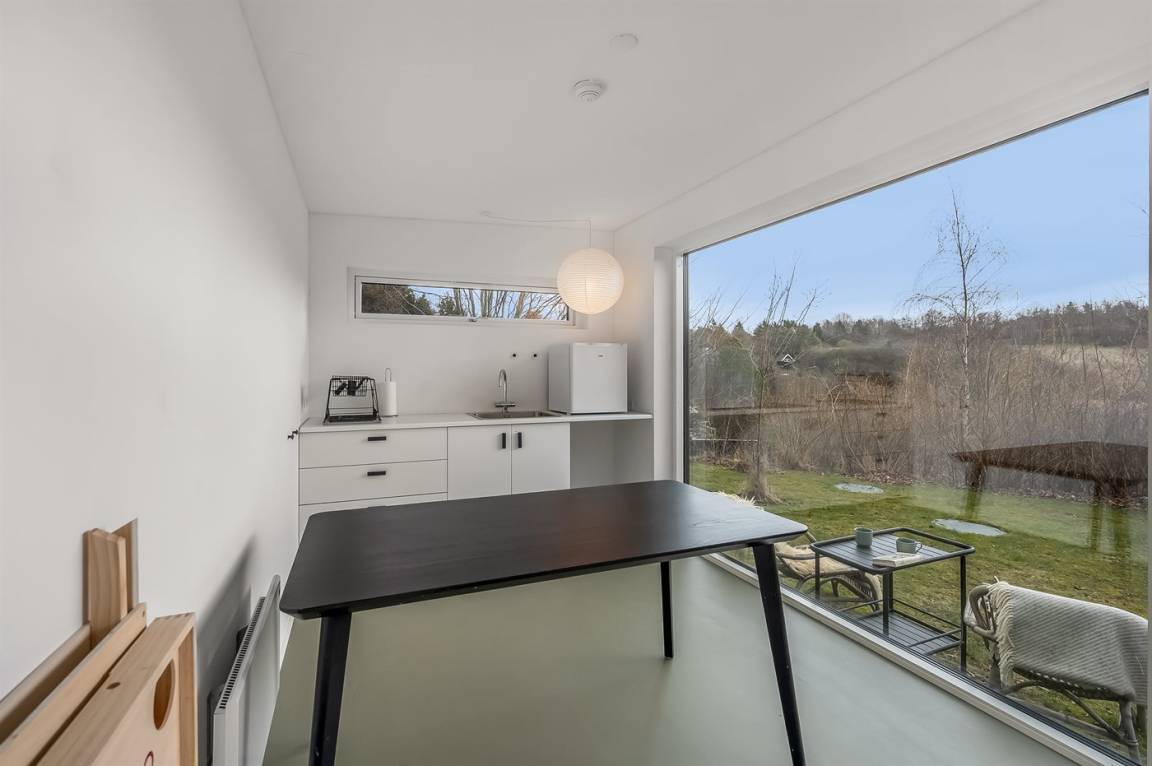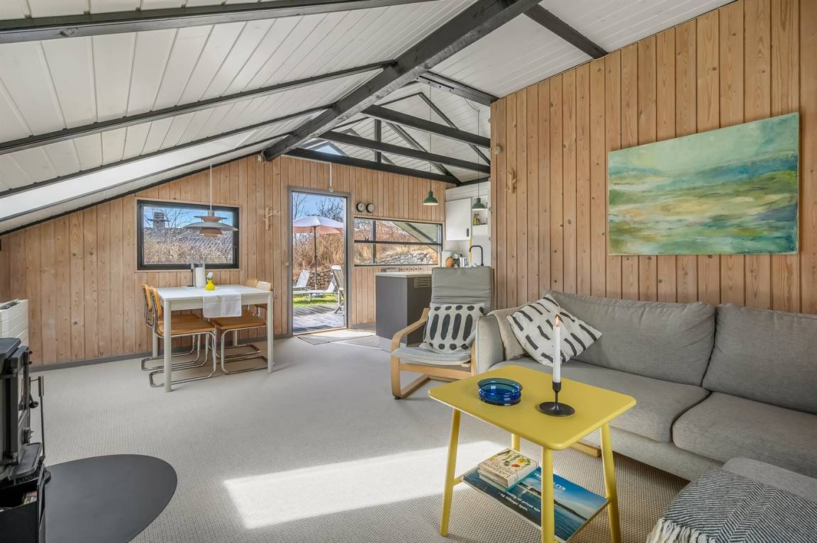 Das Ferienhaus bietet Platz für bis zu 6 Gäste. Das Haus selbst ist ein klassisches und gemütliches Kalmar-Ferienhaus mit zwei Schlafzimmern, Badezimmer sowie einer Küche mit Geschirrspüler, die offen mit dem Wohn- und Essbereich verbunden ist. Hier herrscht eine helle und einladende Atmosphäre, in der die Familie sich nach einem Tag in der Natur versammeln kann.