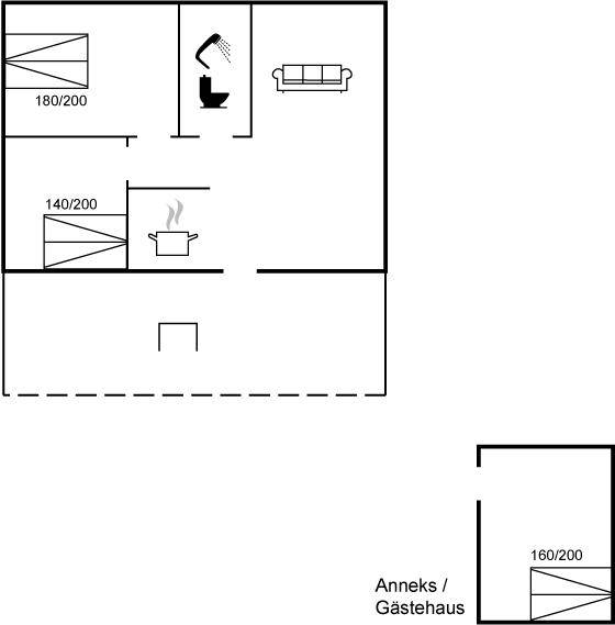SchlafverhältnisseDie Schlafplätze verteilen sich auf 3 Schlafräume. 6 Schlafplätze in Doppelbetten. 2 von diesen Schlafplätzen befinden sich im Gästehaus.