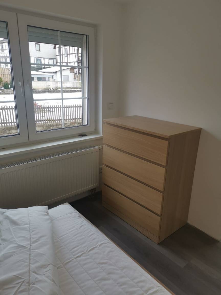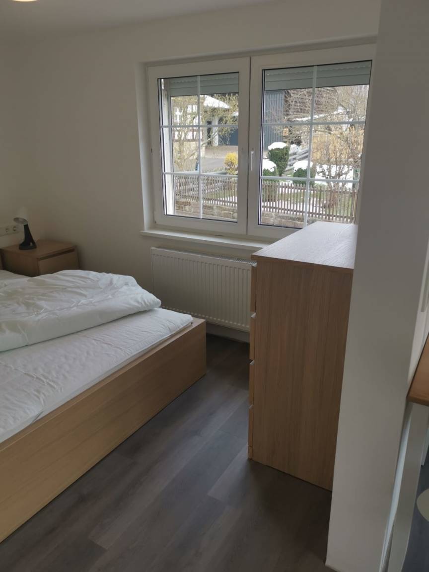 Zur Vermietung steht eine sehr schöne und neu renovierte Ferienwohnung für max. 2 Personen in guter Lage in Knüllwald-Remsfeld. Die komplette Ausstattung und Möblierung ist ebenfalls nagelneu - hierzu zählt: Schlafzimmer mit TV, Bett 1,40 x 2,00 m und Nachttischschrank und Kommode zum verstauen ihrer Kleidung. Die neue Markenküche bietet reichlich Platz und ist voll ausgestattet (u.a. Herd, Spülmaschine, Kühlschrank, Kaffeemaschine und Toaster, etc.) sowie einem mit Tisch 2 Stühlen - ein weiteres TV-Gerät im Bereich der Küche lädt zum entspannen ein. Das neue Bad mit Dusche, Waschbecken und Toilette besticht durch Eleganz und hochwertige Ausstattung.