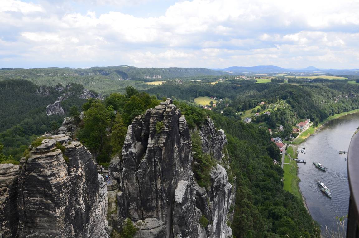 Bizarre Felsnadeln, Riffe und tiefe Schluchten wechseln mit weiten Hochflächen, großen, stillen Wäldern und lieblichen Tälern, über denen sich Tafelberge erheben. Eingebettet in pure Natur: die Elbe, auf der die älteste Schaufelraddampferflotte der Welt verkehrt, und so manches gemütliche Städtchen.