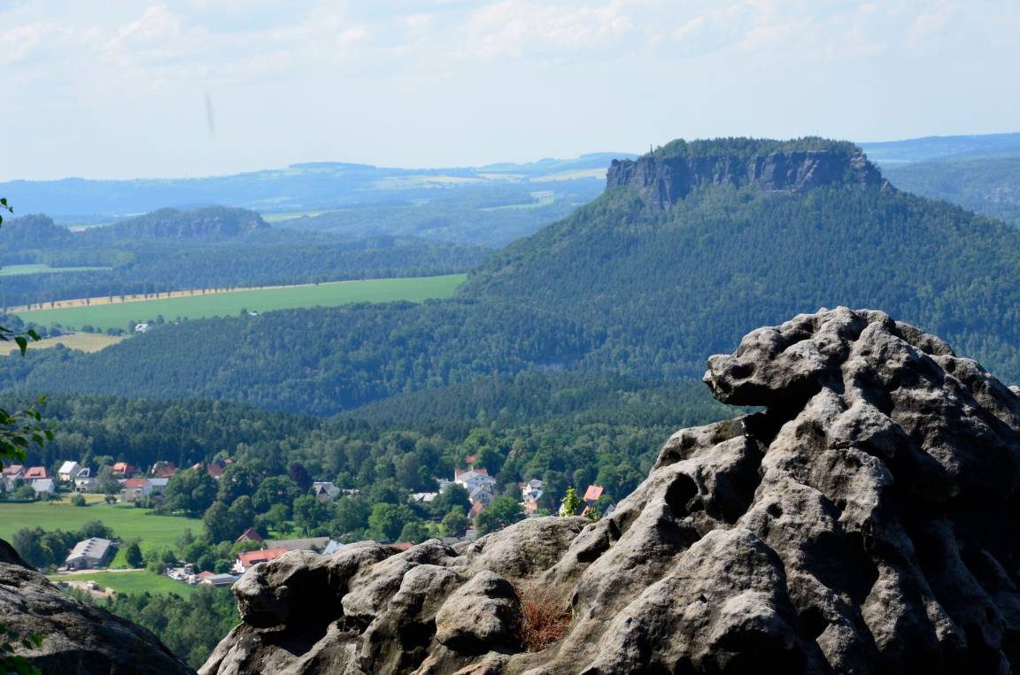 Bizarre Felsnadeln, Riffe und tiefe Schluchten wechseln mit weiten Hochflächen, großen, stillen Wäldern und lieblichen Tälern, über denen sich Tafelberge erheben. Eingebettet in pure Natur: die Elbe, auf der die älteste Schaufelraddampferflotte der Welt verkehrt, und so manches gemütliche Städtchen.