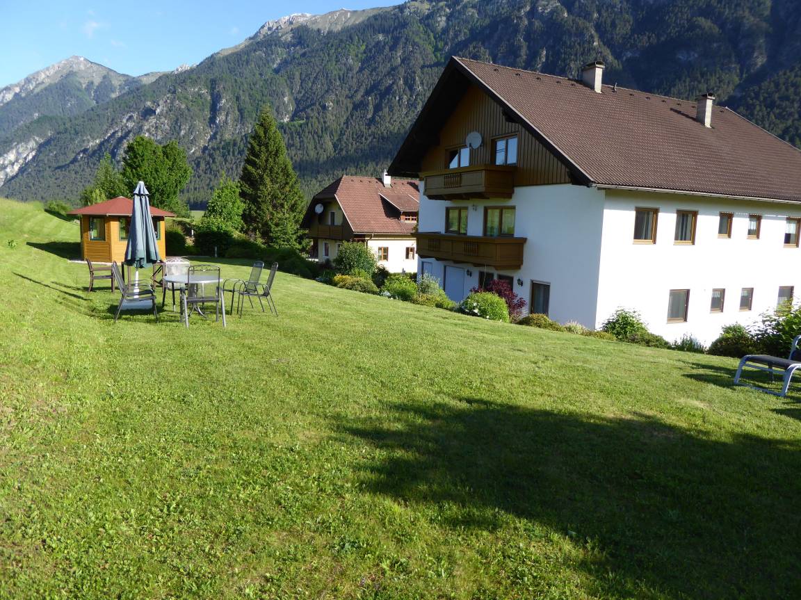 Eine Liegewiese mit Liegestühle zum entspannen die Terrasse zum feiern können wir Ihnen anbieten.