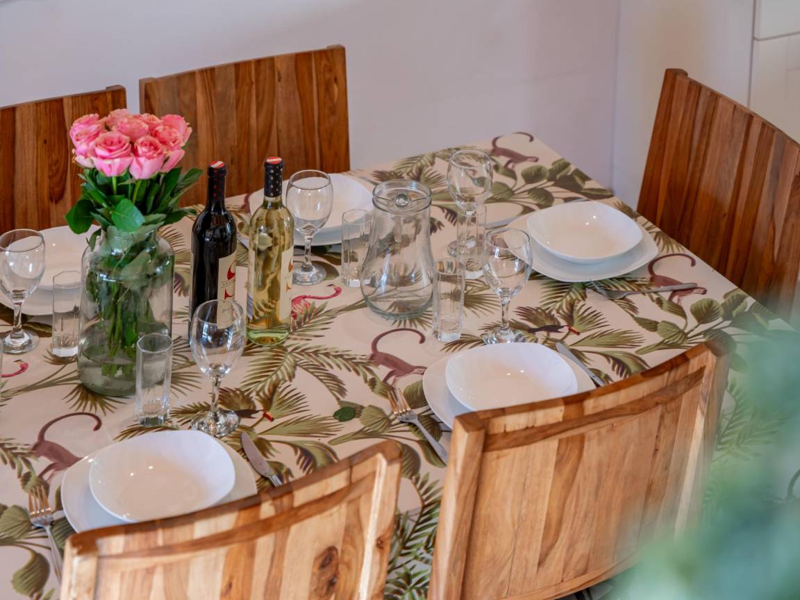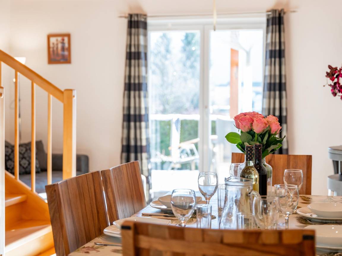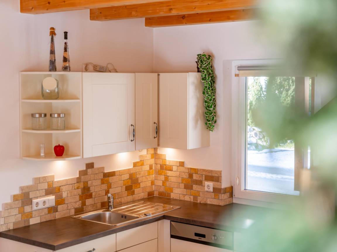 Layout : Parterre: offene Küche mit Kochplatte, Dunstabzugshaube, Kaffeemaschine(Filter), Backofen, Mikrowelle, Geschirrspüler, Kühl-/Gefrierkombination , Wohn/Esszimmer mit Doppelschlafcouch, TV, Esstisch, DVD-Player , Toilette mit Waschbecken, Toilette , Gartentüren