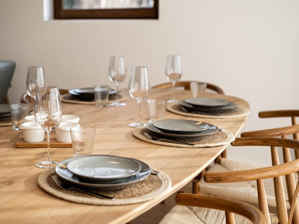 Layout : Parterre: Wohnzimmer mit TV(Flatscreen, smart TV), Sitzecke , Esszimmer mit Esstisch , Küche mit Kochplatte(Induktion), Wasserkocher, Toaster, Dunstabzugshaube, Kaffeemaschine(Filter), Backofen, Kombi-Mikrowelle, Geschirrspüler, Kühlschrank(+ Gefrierfach), Stabmixer , Schlafzimmer mit Badezimmer mit Doppelbett(Doppelbettdecke), Dusche(ebenerdige Dusche, Regen), Waschbecken , Toilette mit Toilette , Abstellraum mit Wäschetrockner, Waschmaschine, Staubsauger