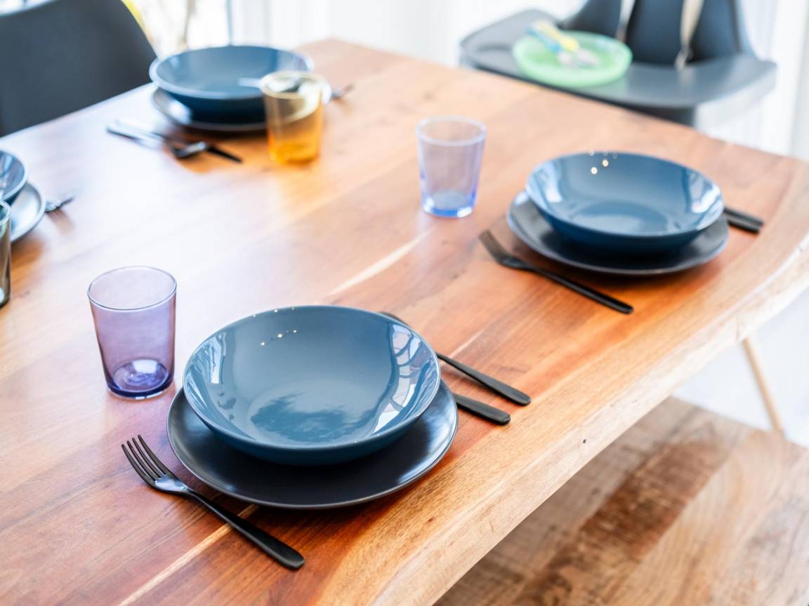 Layout : In der 1. Etage: Küche mit Kochplatte(Induktion), Wasserkocher, Toaster, Dunstabzugshaube, Kaffeemaschine(Filter, Dolce Gusto), Backofen(elektrisch), Mikrowelle, Geschirrspüler, Kühlschrank(+ Gefrierfach) , Wohn/Esszimmer mit Doppelschlafcouch(Doppelbettdecke), TV(Flatscreen, digital), Esstisch, Sitzecke, Radio, Stereoanlage , Schlafzimmer mit Doppelbett(Doppelbettdecke), TV , Schlafzimmer mit Doppelbett(Doppelbettdecke) , Badezimmer mit Dusche(ebenerdige Dusche), Waschbecken , Toilette mit Toilette , Abstellraum mit Wäschetrockner, Waschmaschine, Staubsauger, Bügelbrett, Bügeleisen , Balkon, 1x Kinderbett (ohne Bettwäsche), 1x Hochstuhl