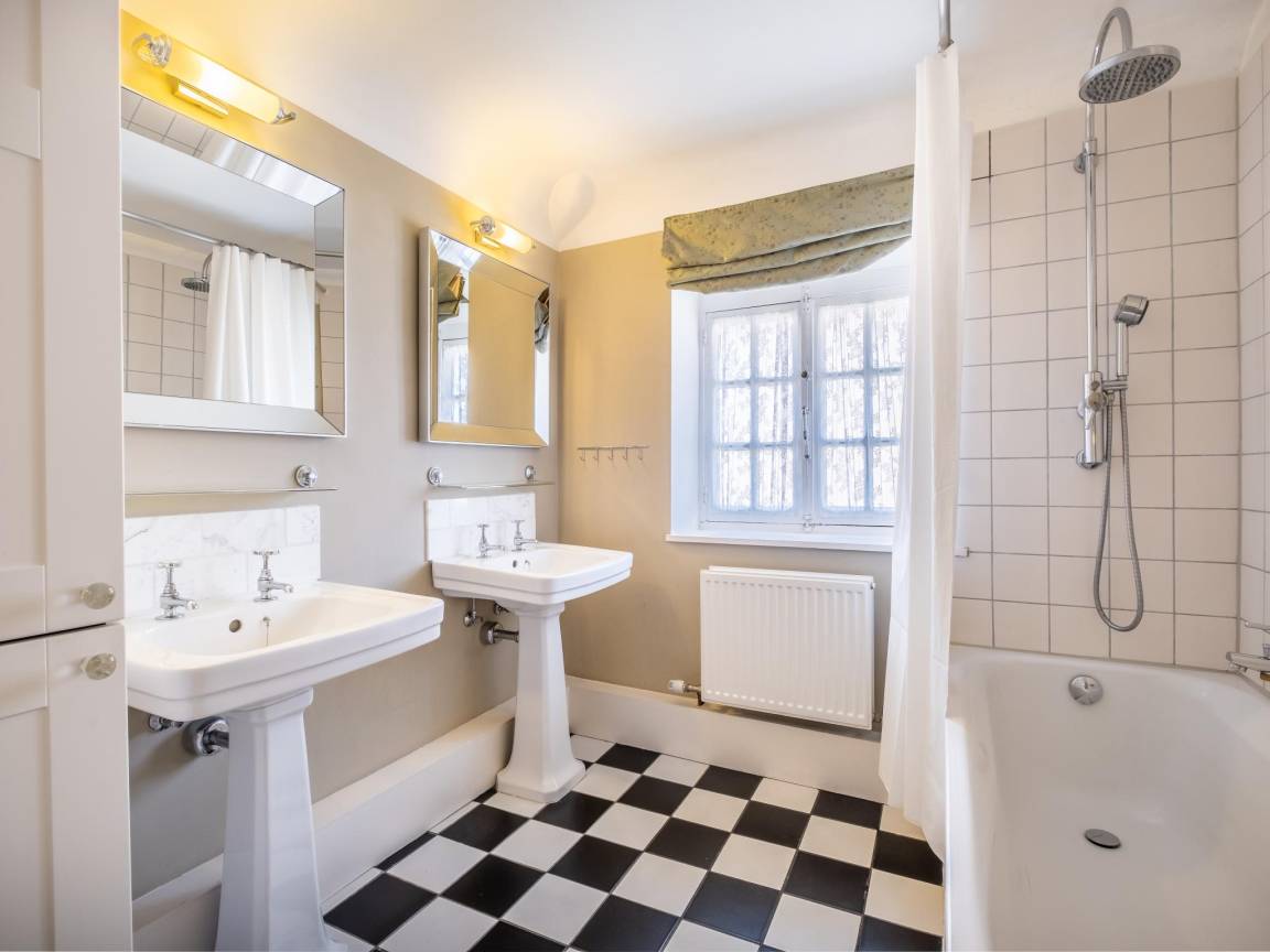 In der 1. Etage: 2x Schlafzimmer mit Doppelbett(Doppelbettdecke), Waschbecken , Schlafzimmer mit 2x Einzelbett(Bettdecke) , Badezimmer mit Badewanne mit Dusche, 2x Waschbecken, Toilette