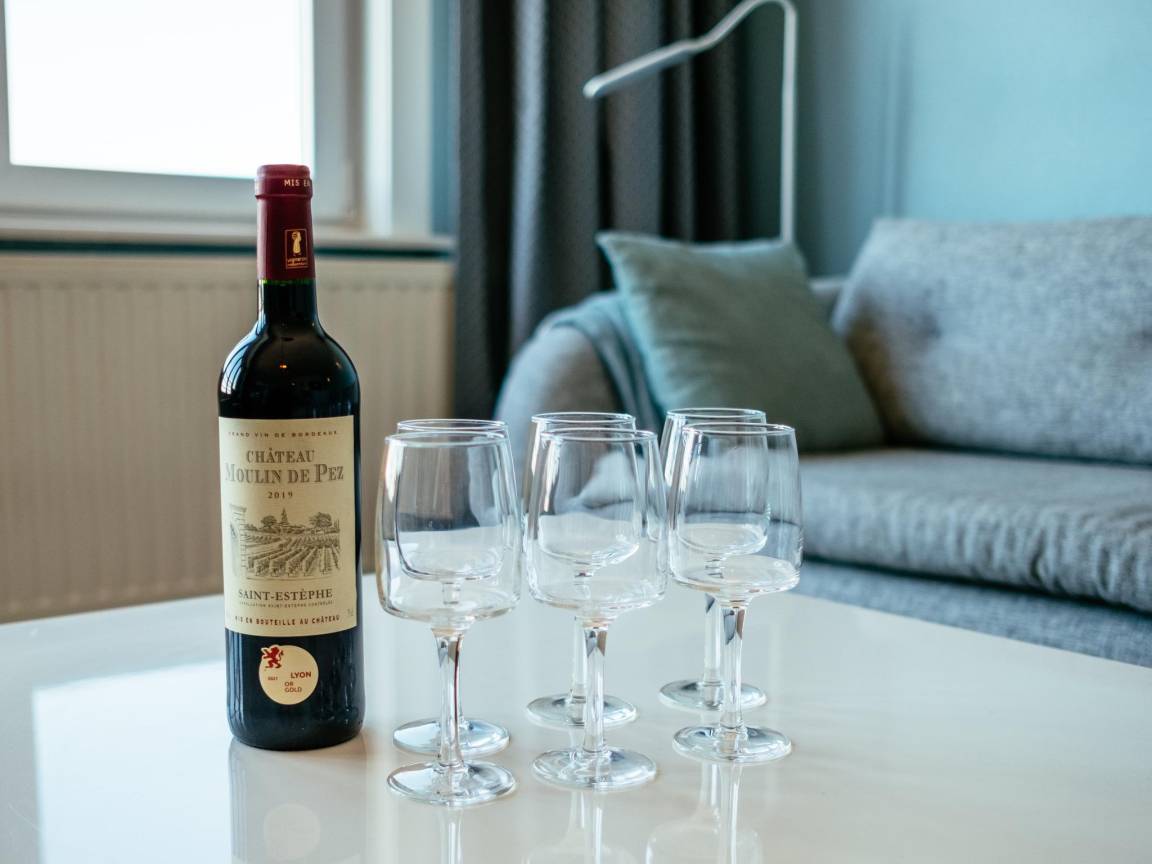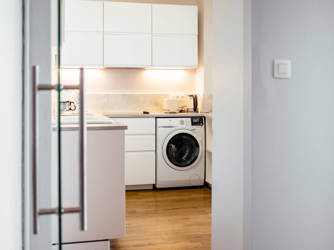 Layout : In der 5. Etage: Küche mit Kochplatte(Ceranfeld), Wasserkocher, Toaster, Dunstabzugshaube, Kaffeemaschine(Filter, senseo pads), Backofen, Mikrowelle, Geschirrspüler, Kühl-/Gefrierkombination, Waschmaschine, Stabmixer , Wohn/Esszimmer mit TV(Flatscreen, digital), Esstisch, Sitzecke , Schlafzimmer mit Doppelbett(Doppelbettdecke) , 2x Schlafzimmer mit 2x Einzelbett(Bettdecke) , Badezimmer mit Badewanne mit Dusche, Waschbecken , Toilette mit Toilette , Staubsauger