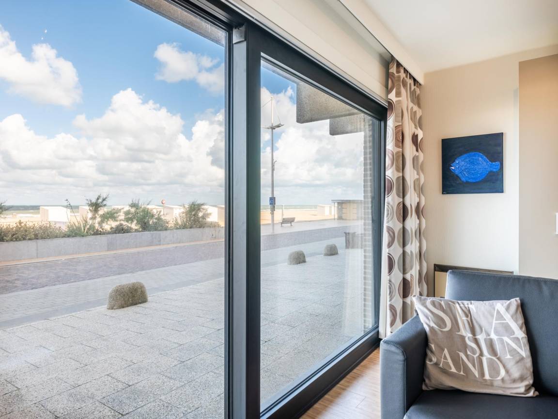Hausbeschreibung : Lassen Sie sich von dem Meerblick in diesem charmanten, renovierten Studio an der Strandpromenade von St-Idesbald verzaubern! Wachen Sie mit dem Rauschen der Wellen auf und genießen Sie den Blick auf das Meer und die Dünen. Ideal für 4 Personen, mit einem gemütlichen Wohnbereich, einer voll ausgestatteten Küche und einem modernen Badezimmer - die perfekte Basis für einen glücklichen Urlaub an der Küste