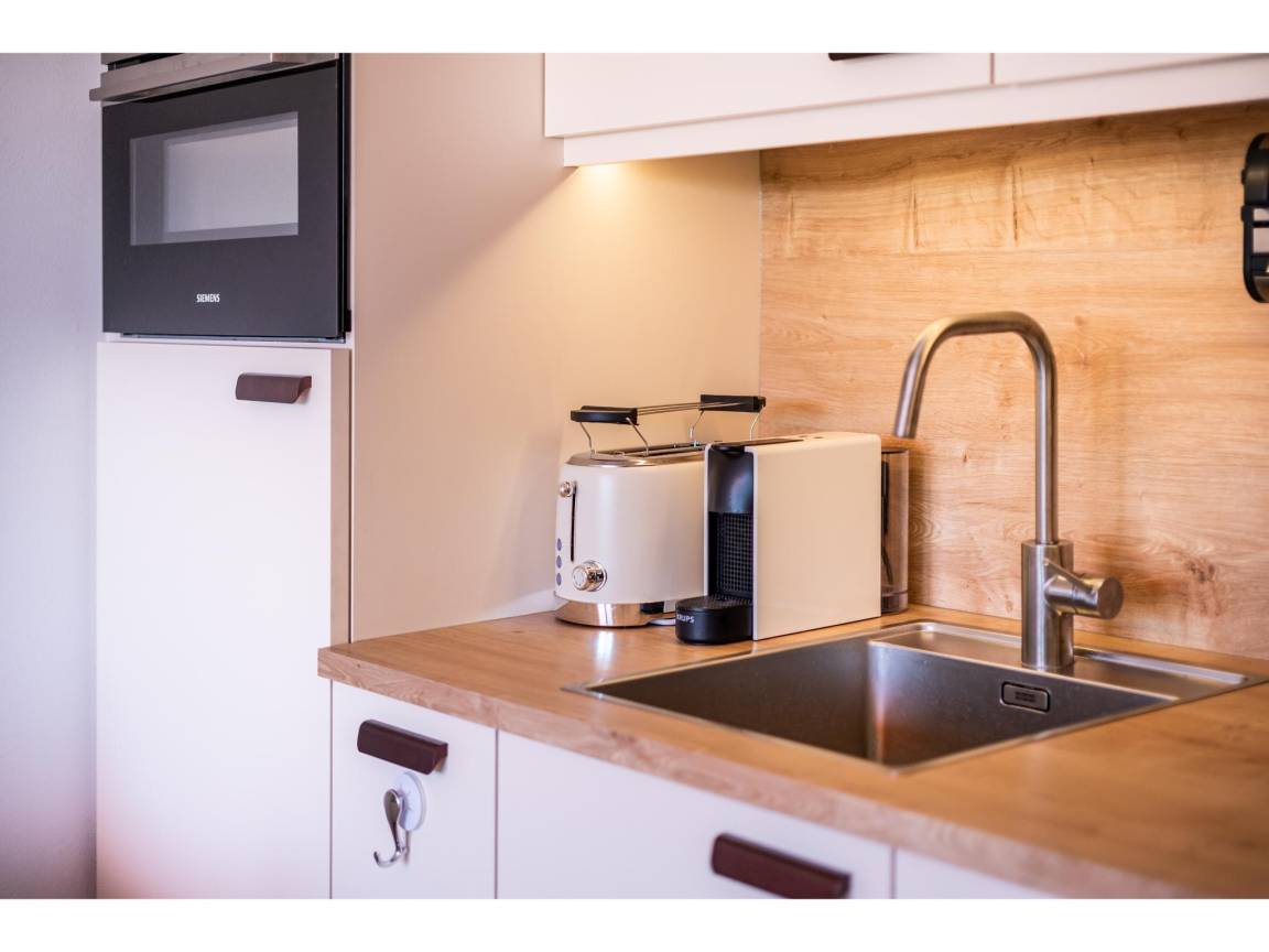 Layout : In der 3. Etage: Kochnische mit Kochplatte(Ceranfeld), Wasserkocher, Toaster, Dunstabzugshaube, Kaffeemaschine(nespresso cups), Grill, Kombi-Mikrowelle, Kühlschrank(+ Gefrierfach), Stabmixer , Wohn/Esszimmer mit TV(Flatscreen, digital), Esstisch, Sitzecke, Radio , Badezimmer mit Dusche(ebenerdige Dusche), Waschbecken, Toilette, Föhn , Balkon, Gartenmöbel, 1x Parkplatz, Aufzug