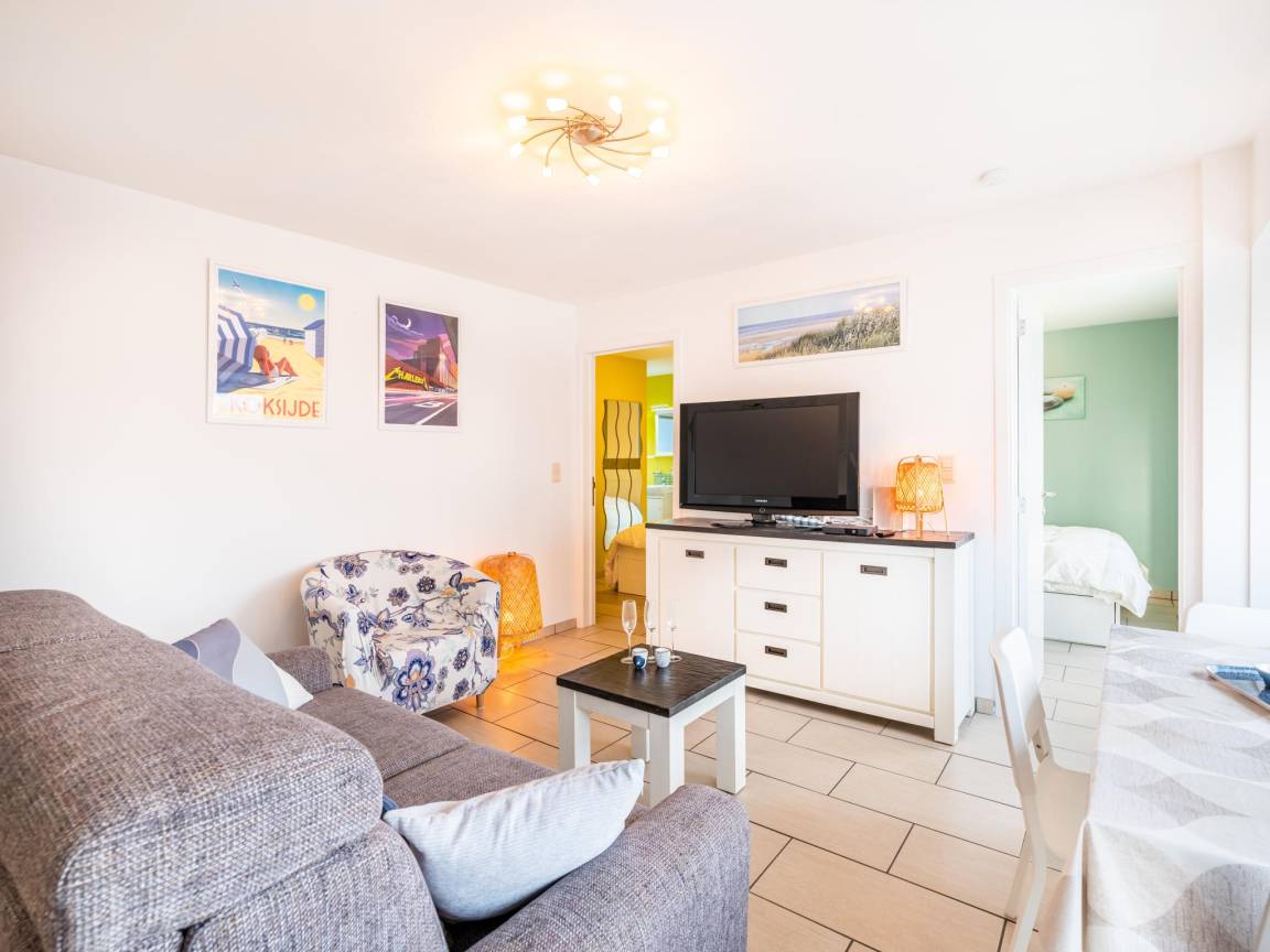 Hausbeschreibung : Vicky third in Koksijde ist eine renovierte, stilvolle 2-Schlafzimmer-Wohnung, ideal für 4 Personen. Das Hotel liegt im Herzen von Koksijde, 500 Meter vom Strand entfernt. Es verfügt über ein helles Wohnzimmer mit offener Küche, separates WC, komfortable Möbel und Digital-TV. In der Nähe von Geschäften, Restaurants und dem Paul Delvaux Museum, der Abtei Ten Duinen und dem Naturschutzgebiet De Doornpanne für Kultur, Natur und Entspannung am Meer
