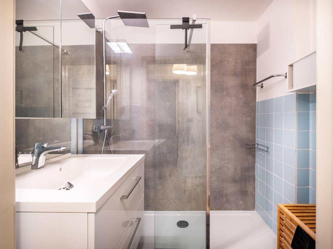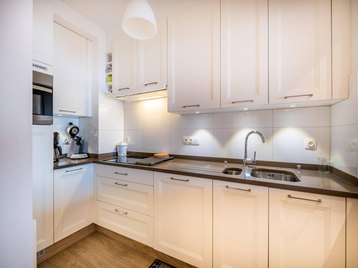 Layout : In der 2. Etage: Küche mit Kochplatte(Ceranfeld), Wasserkocher, Toaster, Dunstabzugshaube, Kaffeemaschine(Filter, senseo pads), Kombi-Mikrowelle, Geschirrspüler, Kühlschrank(+ Gefrierfach), Stabmixer , Wohn/Esszimmer mit TV(Flatscreen, digital), Esstisch, Sitzecke , Schlafzimmer mit Doppelbett(Doppelbettdecke), Waschbecken , Schlafzimmer mit Etagenbett(Bettdecke), Waschbecken , Badezimmer mit Dusche(ebenerdige Dusche), Waschbecken , Toilette mit Toilette , Staubsauger, Balkon, Bügelbrett, Bügeleisen