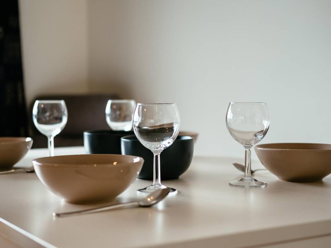 Layout : In der 2. Etage: Küche mit Kochplatte(Ceranfeld), Dunstabzugshaube, Kaffeemaschine(Filter, senseo pads), Backofen, Kombi-Mikrowelle, Geschirrspüler, Kühlschrank(+ Gefrierfach) , Wohn/Esszimmer mit TV(Flatscreen, digital), Esstisch, Sitzecke , Schlafzimmer mit Doppelbett(Doppelbettdecke) , Schlafzimmer mit 2x Etagenbett(Bettdecke) , Badezimmer mit Badewanne, Waschbecken , Toilette mit Toilette , Staubsauger, Balkon, Gartenmöbel