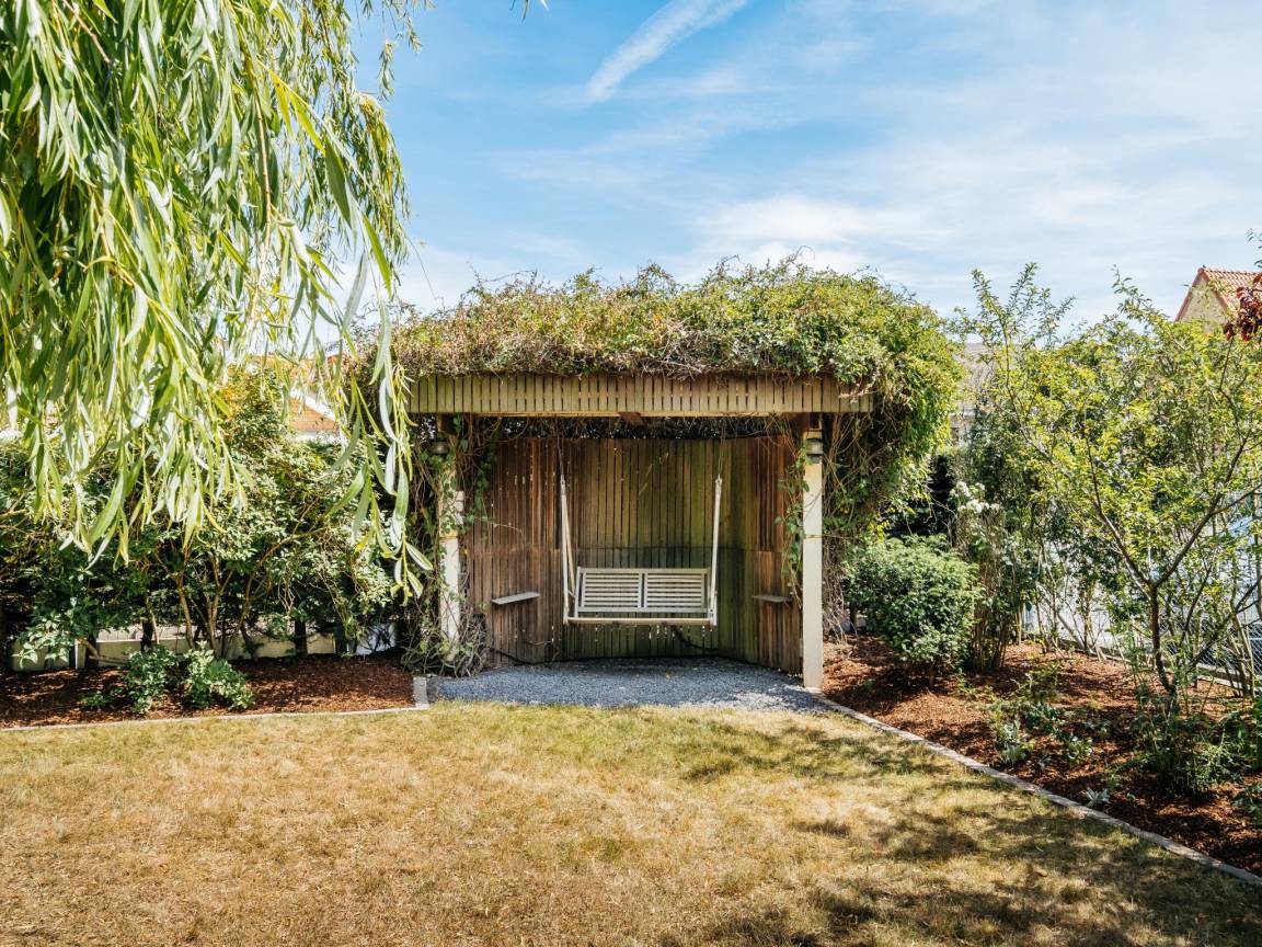 Layout : Parterre: Eingang, Küche mit Kochplatte(Ceranfeld), Wasserkocher, Toaster, Dunstabzugshaube, Kaffeemaschine(Filter, Dolce Gusto), Backofen(elektrisch, Dampf), Kombi-Mikrowelle, Geschirrspüler, Kühlschrank(+ Eismaschine, + Gefrierfach, amerikaner), Tiefkühlschrank, Stabmixer , Wohn/Esszimmer mit TV(Flatscreen, digital), Esstisch, Sitzecke , Schlafzimmer mit Badezimmer mit Doppelbett(Doppelbettdecke), Dusche, Waschbecken , Toilette mit Toilette , Terrasse, Garten(alleinige Nutzung, angelegt, umzäunt), Gartenmöbel, Liegen, BBQ(Holzkohle), Sandkasten, 1x Hochstuhl