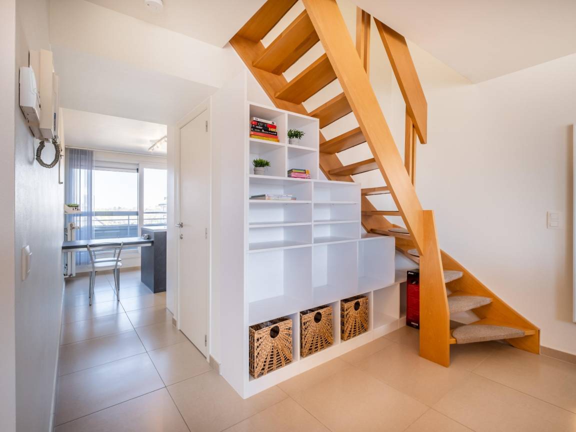 Layout : In der 3. Etage: offene Küche mit Kochplatte(Ceranfeld), Wasserkocher, Toaster, Dunstabzugshaube, Kaffeemaschine(Filter, pads), Backofen, Mikrowelle, Geschirrspüler, Kühlschrank, Stabmixer , Wohn/Esszimmer mit Doppelschlafcouch(Doppelbettdecke), TV(Flatscreen, digital), Esstisch, Sitzecke , Toilette mit Toilette , 2x Balkon