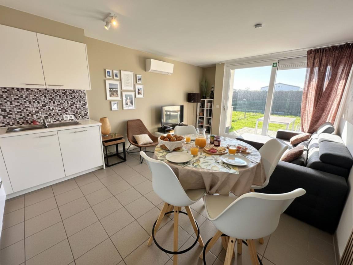 Hausbeschreibung : Charmantes Ferienhaus auf der Domäne Westhinder in Koksijde mit 2 Schlafzimmern für bis zu 4 Personen, ausgestattet mit allem Komfort. Ideal für eine Familie mit Kindern. Genießen Sie das gemütliche Wohnzimmer mit TV, Wifi und offener Küche. Der sonnige Garten und die Terrasse machen es zum perfekten Ort zum Genießen und Entspannen.