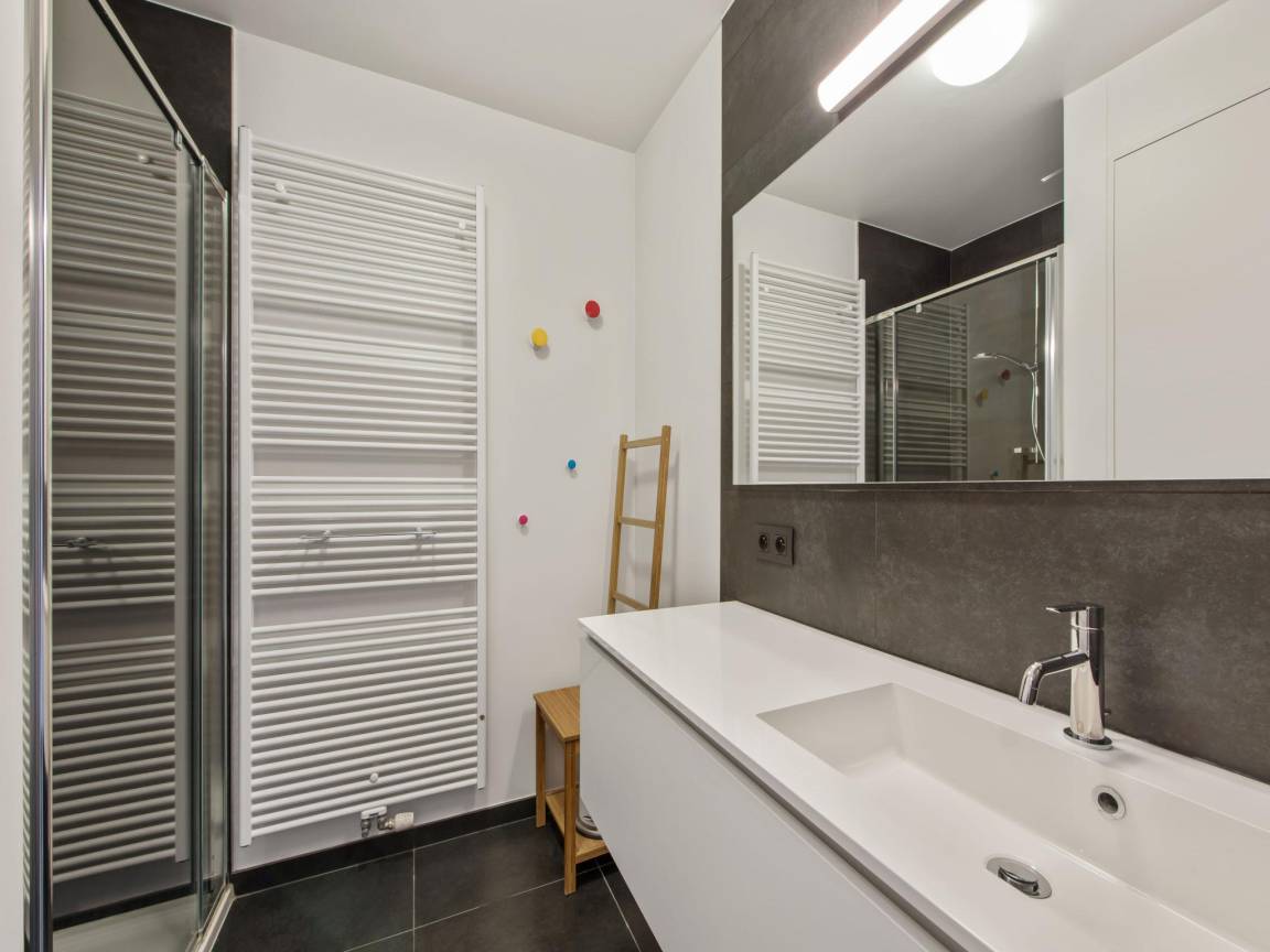Layout : In der 5. Etage: offene Küche mit Kochplatte(Ceranfeld), Toaster, Dunstabzugshaube, Kaffeemaschine(Filter), Backofen, Kombi-Mikrowelle, Geschirrspüler, Kühl-/Gefrierkombination, Stabmixer , Wohn/Esszimmer mit TV(Flatscreen, digital), Esstisch, Sitzecke , Schlafzimmer mit 2x Etagenbett(Bettdecke) , Schlafzimmer mit Doppelbett(Doppelbettdecke) , Badezimmer mit Dusche(ebenerdige Dusche), Waschbecken , Toilette mit Toilette , Staubsauger, Balkon