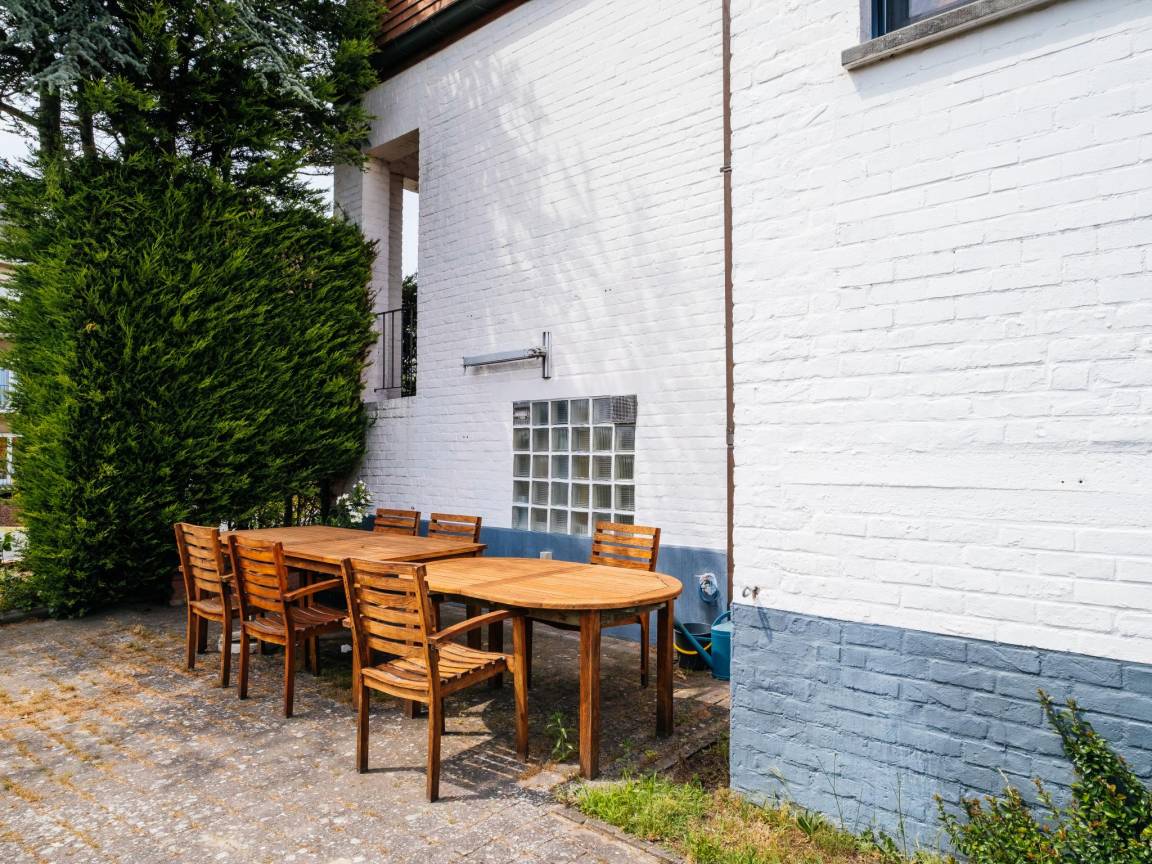 Hausbeschreibung : Gemütliche Belle-Etage-Ferienwohnung mit 4 Schlafzimmern in einem ruhigen Viertel von Koksijde, nur 7 Gehminuten vom Meer und den Geschäften entfernt. Jeder Bereich des Ferienhauses hat seinen eigenen Stil, genießen Sie ein modernes Wohnzimmer, eine separate Einbau- und Profiküche, in der Sie nach Herzenslust kochen können, und einen Essbereich im Landhausstil. Auf der Terrasse können Sie gemeinsam genießen. Dieses Ferienhaus hat alles für einen gelungenen Urlaub mit Familie oder Freunden