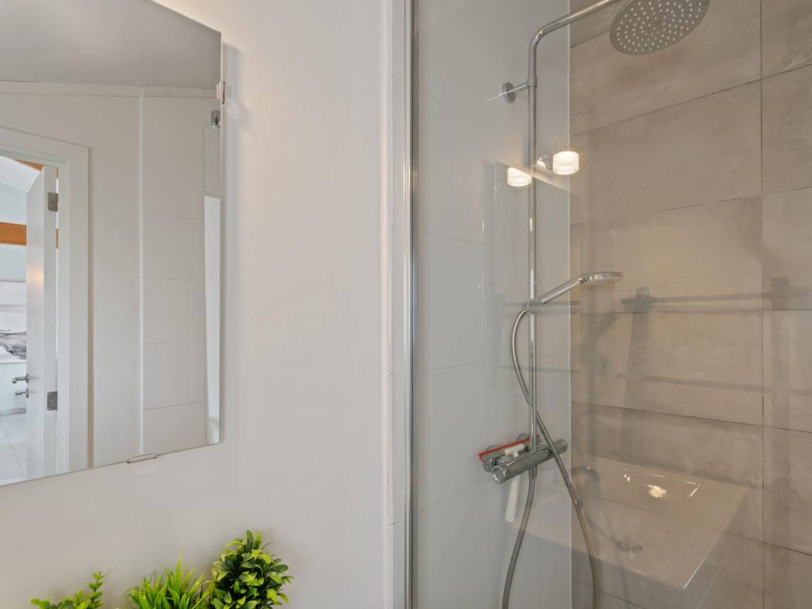 Layout : Parterre: offene Küche mit Kochplatte, Wasserkocher, Kaffeemaschine(Filter), Backofen, Mikrowelle, Geschirrspüler, Kühlschrank(+ Gefrierfach) , Wohn/Esszimmer mit TV, Esstisch, Sitzecke, 1x Hochstuhl , Schlafzimmer mit Doppelbett(Doppelbettdecke, 160 x 200 cm) , Schlafzimmer mit 2x Einzelbett(Bettdecke, 90 x 200 cm), 1x Kinderbett (ohne Bettwäsche) , Badezimmer mit Badewanne mit Dusche, Waschbecken, Föhn , Toilette mit Toilette , Waschmaschine, Klimaanlage