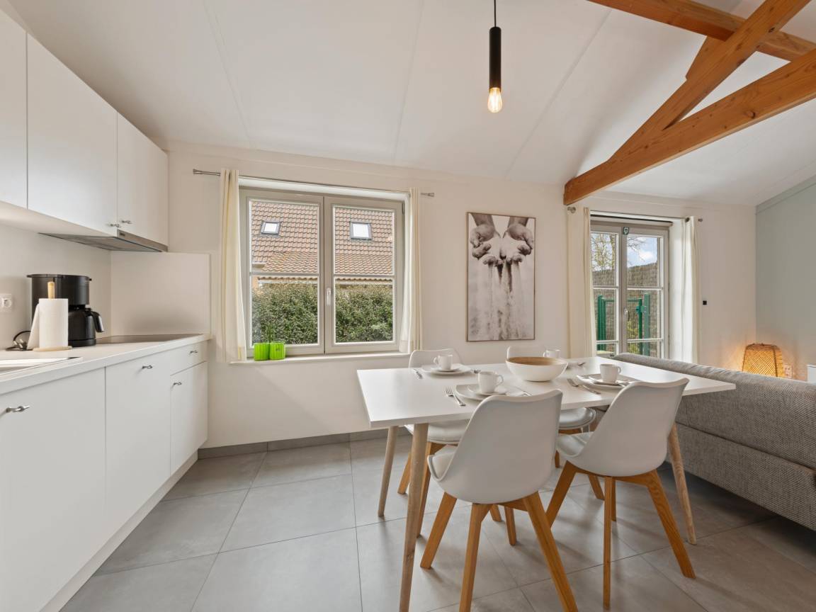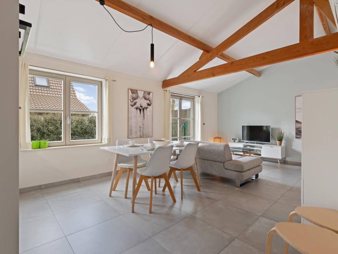 Hausbeschreibung : Charmantes Ferienhaus auf der Domäne Westhinder in Koksijde mit 2 Schlafzimmern für bis zu 4 Personen, ausgestattet mit allem Komfort. Ideal für eine Familie mit Kindern. Genießen Sie das gemütliche Wohnzimmer mit TV, Wifi und offener Küche. Der sonnige Garten und die Terrasse machen es zum perfekten Ort zum Genießen und Entspannen.