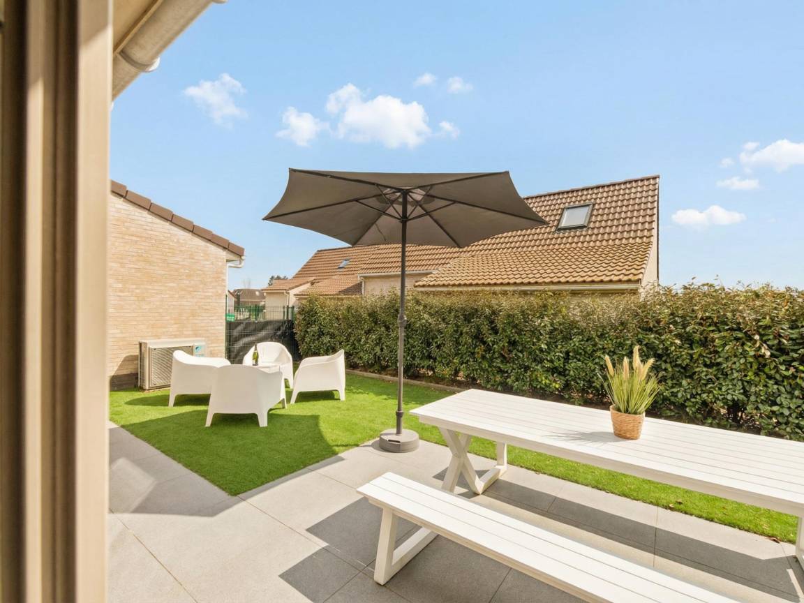 Terrasse, Garten(alleinige Nutzung, umzäunt), Gartenmöbel, BBQ(elektrisch), 1x Parkplatz, Parasol