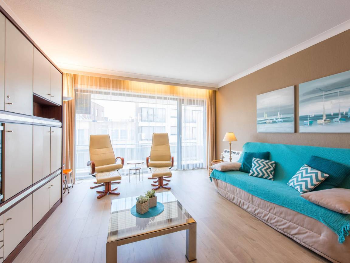 Hausbeschreibung : Vintitsch third in Koksijde ist eine gepflegte Ein-Zimmer-Wohnung im klassischen Stil im dritten Stock mit Aufzug und seitlichem Meerblick. Sie verfügt über ein geräumiges Wohnzimmer mit Schlafsofa, eine separate Küche, ein Badezimmer mit Badewanne und einen sonnigen Balkon. Ideal für 6 Personen. Sehr praktisch ist die includierte Garage. Die Wohnung ist zentral gelegen und nur wenige Gehminuten vom Strand, Geschäften und Restaurants entfernt