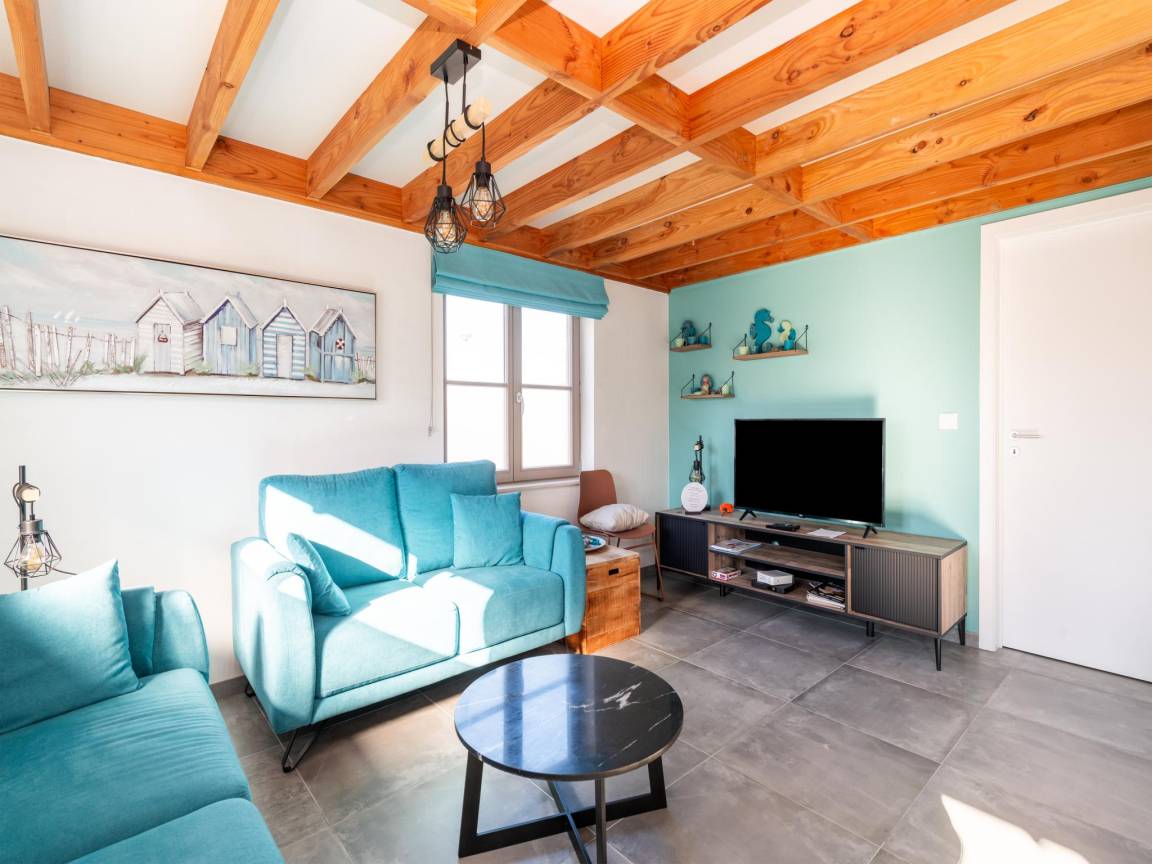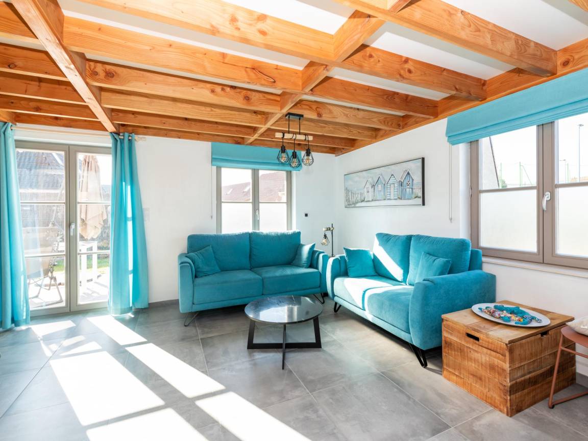 Hausbeschreibung : Entspannen Sie sich in diesem ruhigen, stilvollen Haus. Charmantes Ferienhaus in der Domäne Westhinder bei Koksijde mit 3 Schlafzimmern für max. 6 Personen. Privater Parkplatz und eingezäunter Garten, ideal für eine Familie mit Kindern. Ausgestattet mit allen Annehmlichkeiten, ist es ideal zum Entspannen. Gemütliches Wohnzimmer mit TV, WIFI und ausgestattete Küche mit Blick auf den Garten. Auf dem Gelände gibt es einen schönen Spielplatz, einen Multisportplatz und eine Petanque-Anlage