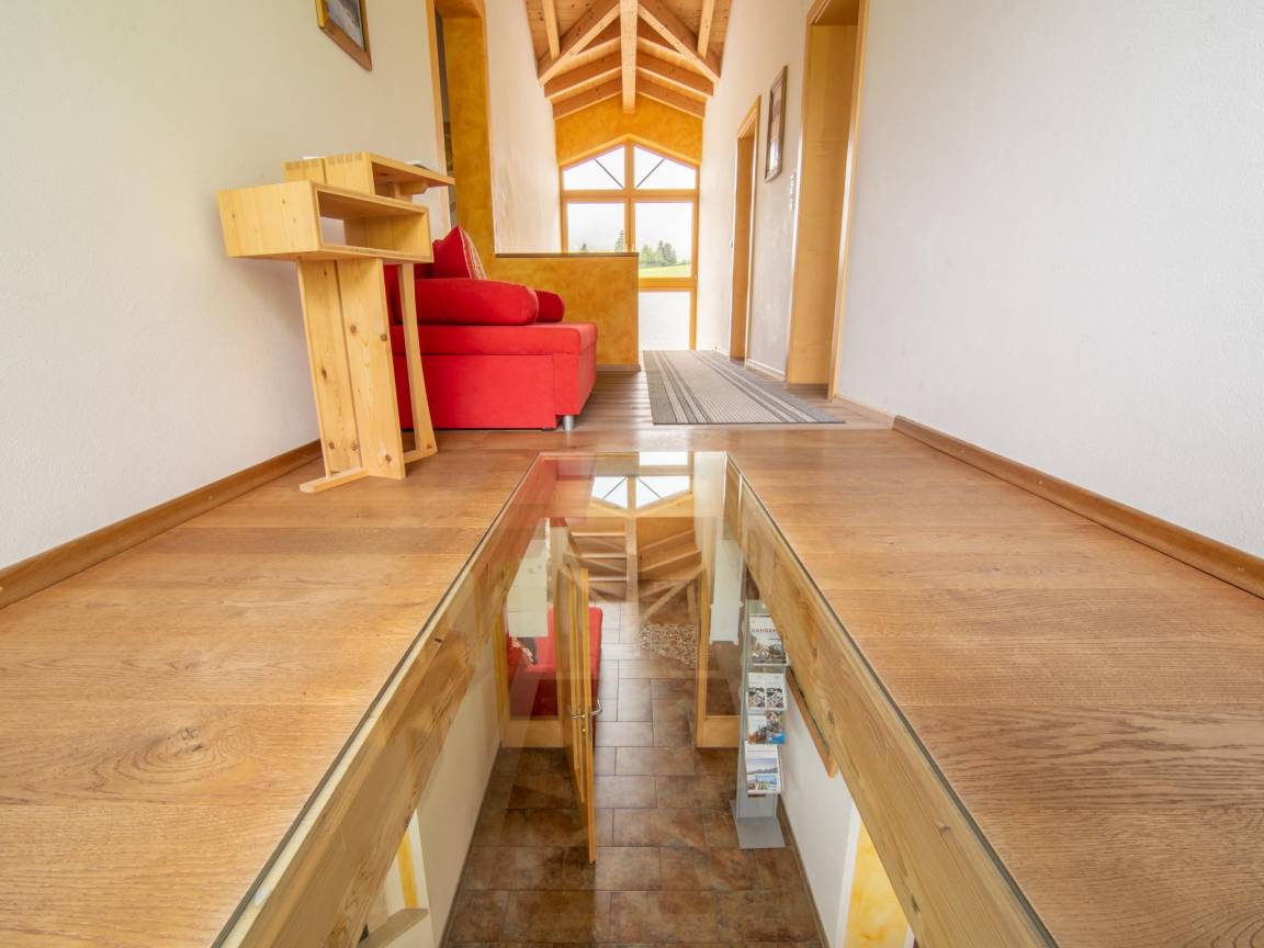 Zwischengeschoss: Wohnzimmer mit TV(Flatscreen, Satellit), Sitzecke , Wohnküche mit Esstisch, Wasserkocher, Toaster, Kochherd(4 Kochplatten, Ceranfeld), Dunstabzugshaube, Kaffeemaschine, Backofen, Mikrowelle, Geschirrspüler, Kühl-/Gefrierkombination , Schlafzimmer mit Doppelbett , Badezimmer mit Dusche, Waschbecken, Toilette