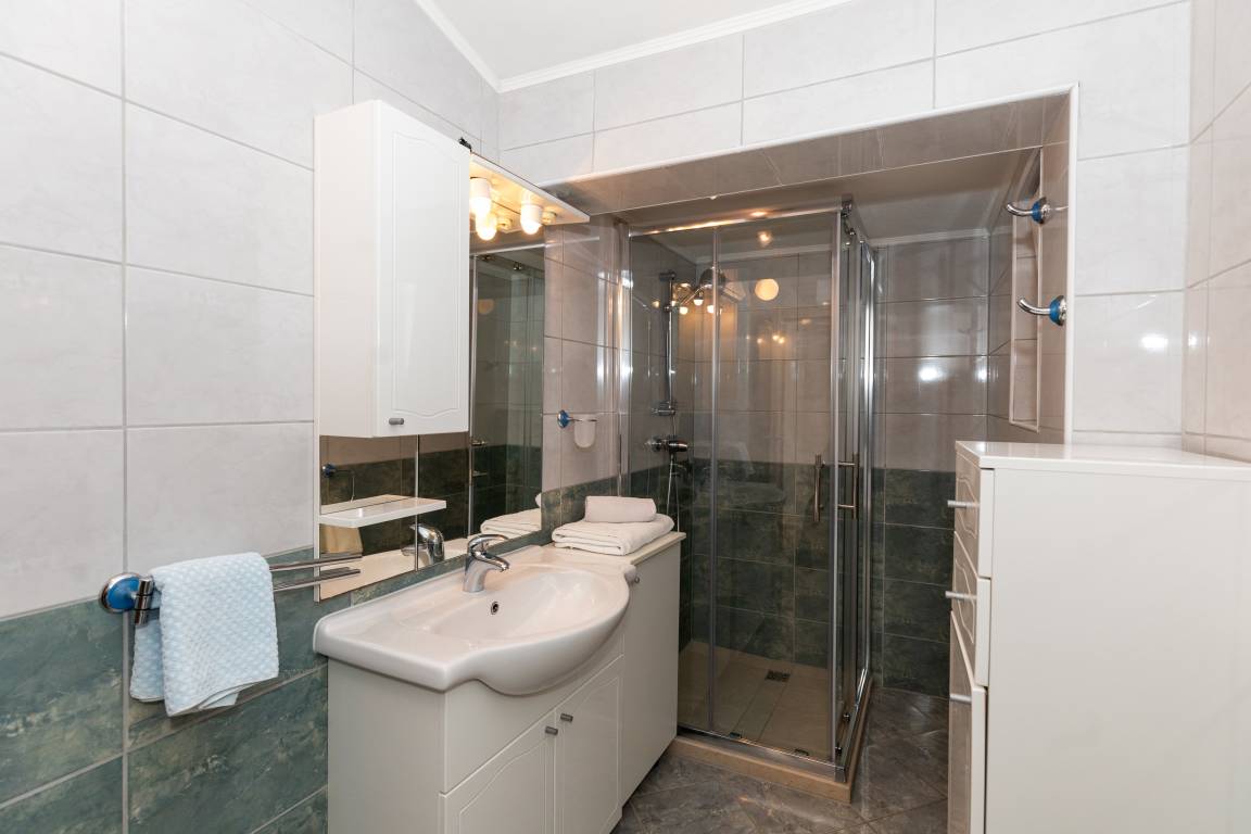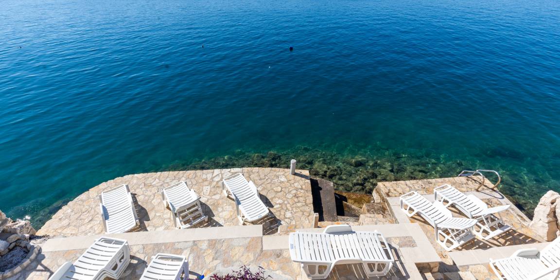 There is the possibility of swimming on your own beach, which is made of concrete and paved with stone and which is located in front of the house itself, or the possibility of going to the common one.