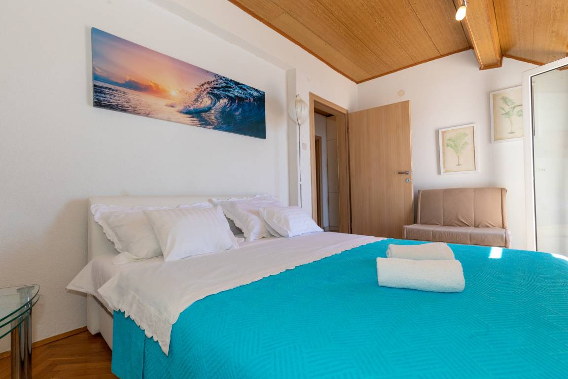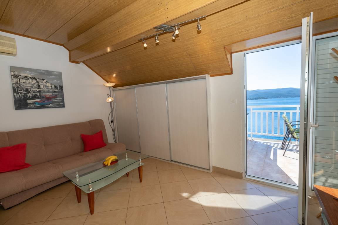Apartment VESNA 2 is located in a house with 2 other apartments and is located at the attic of the house. The view of the Peljesac peninsula, the newly built bridge to Peljesac, the sea from the apartment's large terrace is breathtaking.