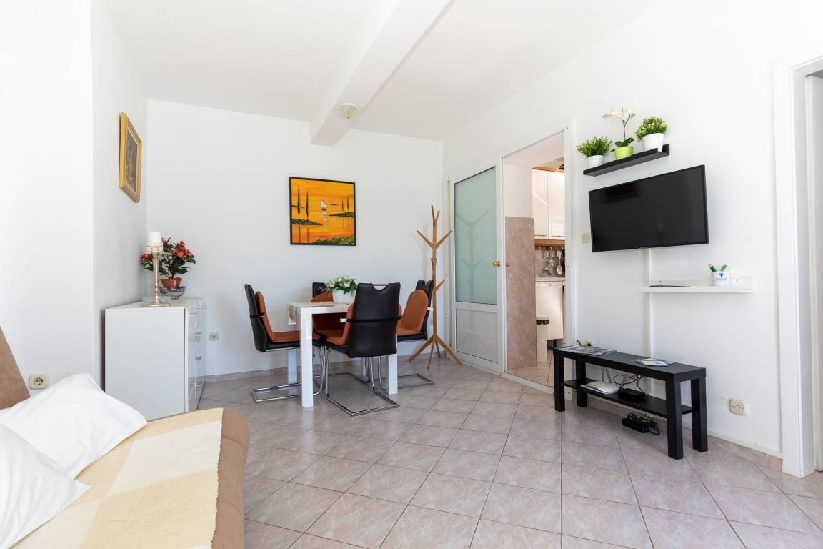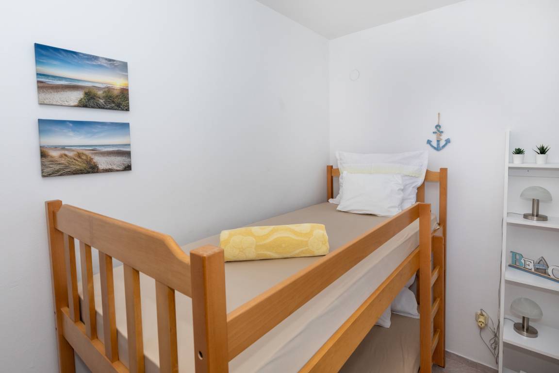 Apartment has one bedroom with a double bed, another bedroom with a bunk bed for two. Beds are equipped with linen. The living room has a sofa with the possibility of sleeping for one person. The kitchen is equipped with all the necessary appliances (microwave, kettle, refrigerator, freezer, stove, dishes). Towels, washing machine and hair dryer are included in the bathroom. Air conditioning and a satellite programs are installed. Pet is allowed.