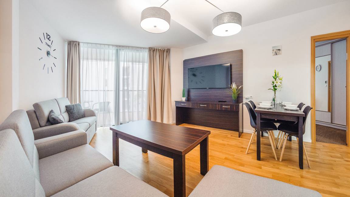• Haustiere sind in der ausgewählten Wohnung erlaubt. Die Kosten für den Aufenthalt mit einem Haustier betragen 40 PLN pro Tag.