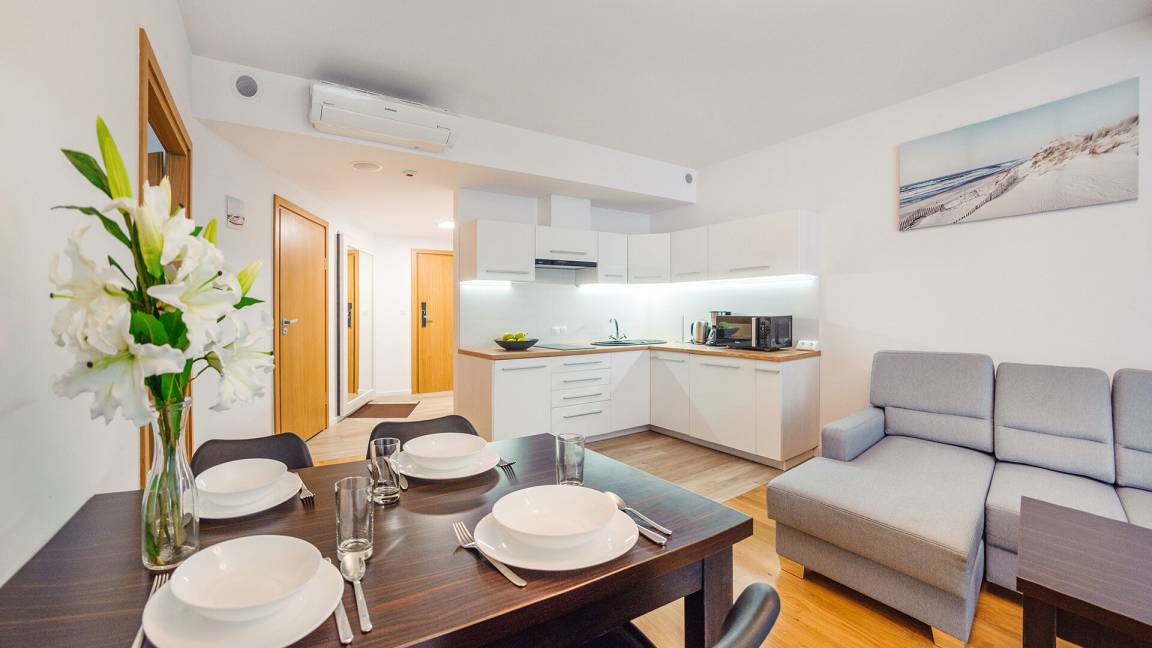 Seaside Apartments ist eine außergewöhnliche Anlage in maritimer Architektur, direkt am Sandstrand von Kołobrzeg gelegen. Es ist der ideale Ort für Familien mit Kindern sowie für alle, die Ruhe und Entspannung suchen. Die einzigartige Lage im ruhigen Osten des Ökoparks und die Nähe zu Radwegen bieten zahlreiche Möglichkeiten, Zeit in der Natur zu verbringen. Die Apartments bieten einen unvergesslichen Meerblick sowie komfortable, klimatisierte Innenräume.