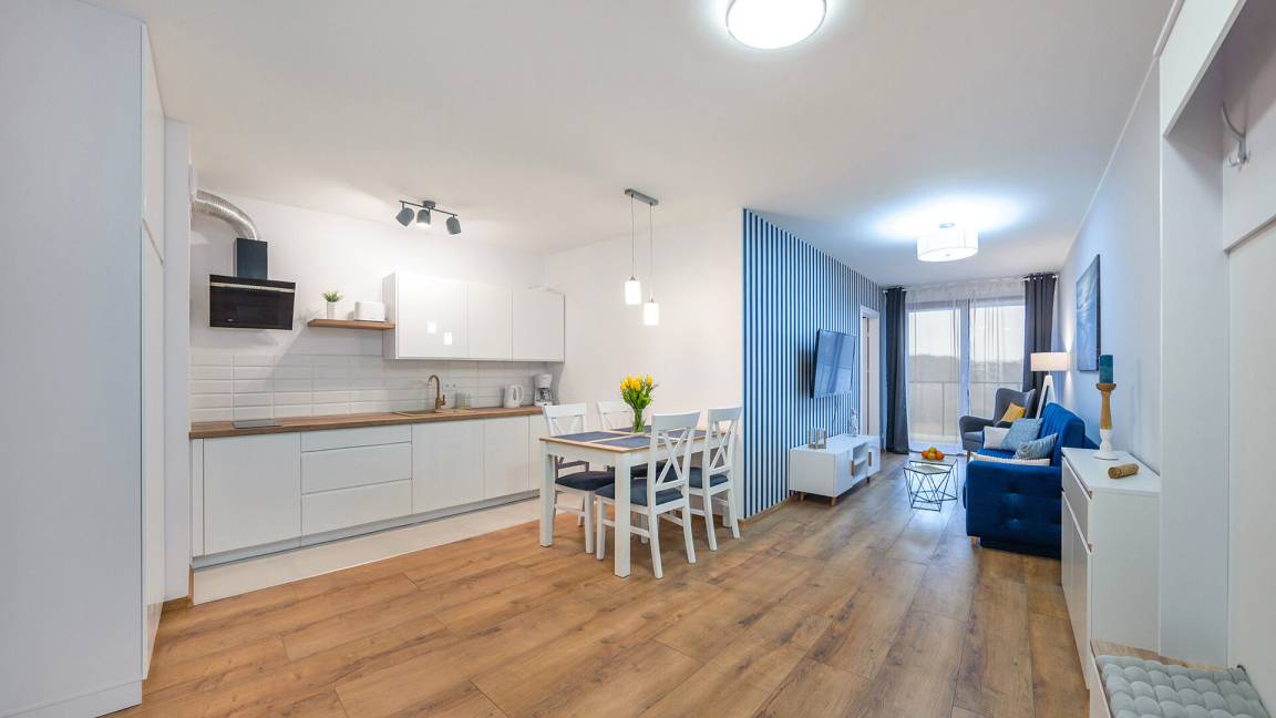 Die Apartments im Resorts Kołobrzeg liegen im ruhigen, westlichen Teil der Stadt, umgeben vom NATURA-2000-Park und nur wenige Minuten vom breiten Weststrand sowie einem Hundestrand entfernt. Die Lage bietet saubere Luft, direkten Kontakt zur Natur und Zugang zu Rad- und Spazierwegen. Die Apartments sind hochwertig ausgestattet und verfügen über voll ausgestattete Küchenzeilen sowie große Terrassen. Auf dem Gelände stehen nummerierte Außenparkplätze und Tiefgaragenplätze gegen Aufpreis zur Verfügung, zudem gibt es einen öffentlichen, kostenpflichtigen Parkplatz vor dem Gebäude. Gästen stehen ein täglich geöffneter Pool sowie eine Sauna zur Verfügung. Kołobrzeg bietet das ganze Jahr über zahlreiche Freizeit- und Kulturangebote sowie eine vielfältige Gastronomie.