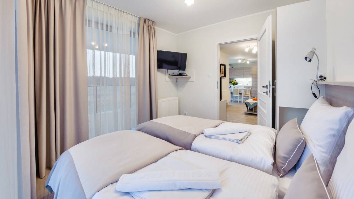 Die Apartments im Resorts Kołobrzeg liegen im ruhigen, westlichen Teil der Stadt, umgeben vom NATURA-2000-Park und nur wenige Minuten vom breiten Weststrand sowie einem Hundestrand entfernt. Die Lage bietet saubere Luft, direkten Kontakt zur Natur und Zugang zu Rad- und Spazierwegen. Die Apartments sind hochwertig ausgestattet und verfügen über voll ausgestattete Küchenzeilen sowie große Terrassen. Auf dem Gelände stehen nummerierte Außenparkplätze und Tiefgaragenplätze gegen Aufpreis zur Verfügung, zudem gibt es einen öffentlichen, kostenpflichtigen Parkplatz vor dem Gebäude. Gästen stehen ein täglich geöffneter Pool sowie eine Sauna zur Verfügung. Kołobrzeg bietet das ganze Jahr über zahlreiche Freizeit- und Kulturangebote sowie eine vielfältige Gastronomie.