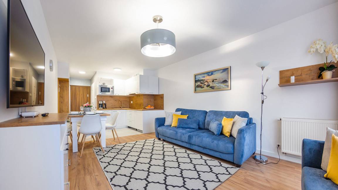 • Haustiere sind in der ausgewählten Wohnung erlaubt. Die Kosten für den Aufenthalt mit einem Haustier betragen 40 PLN pro Tag.