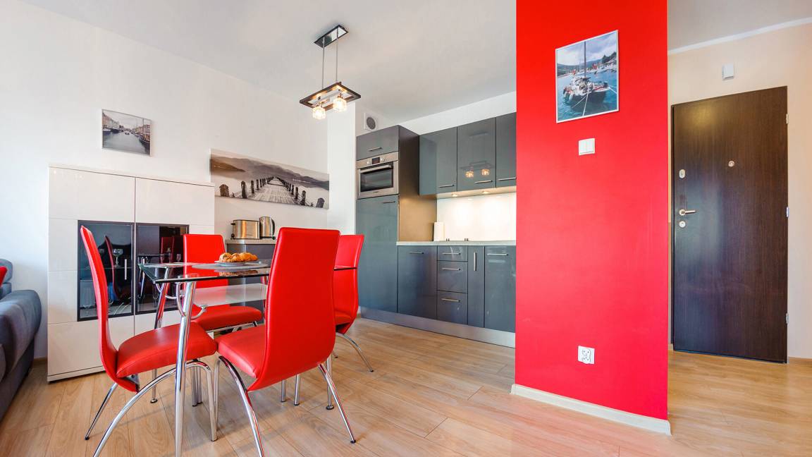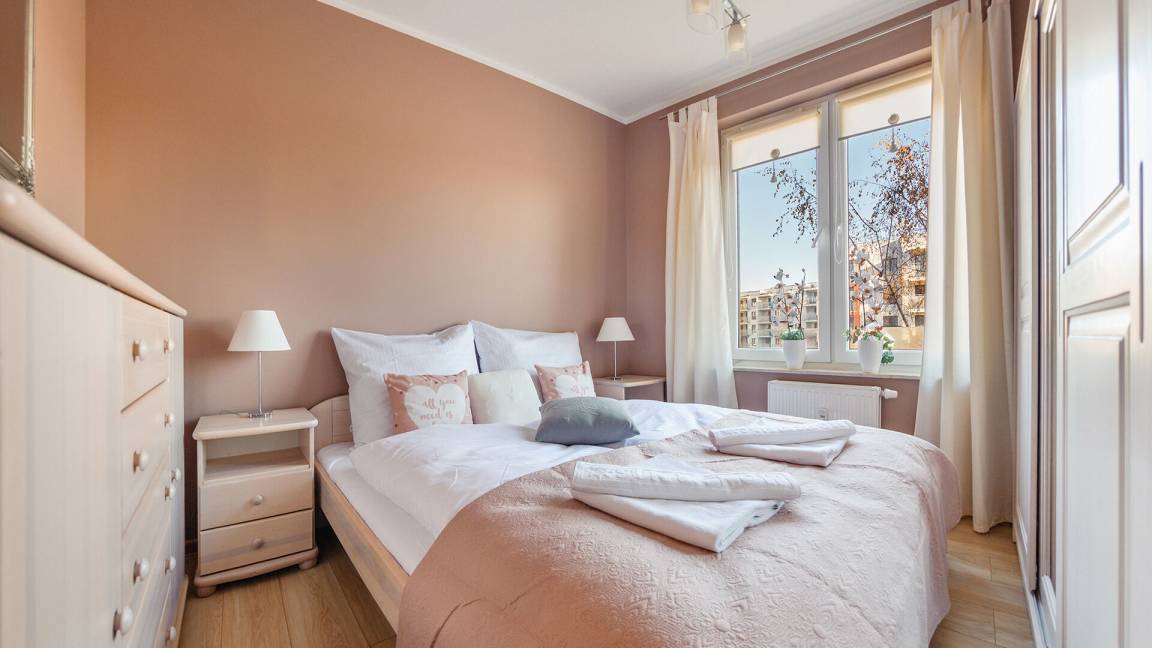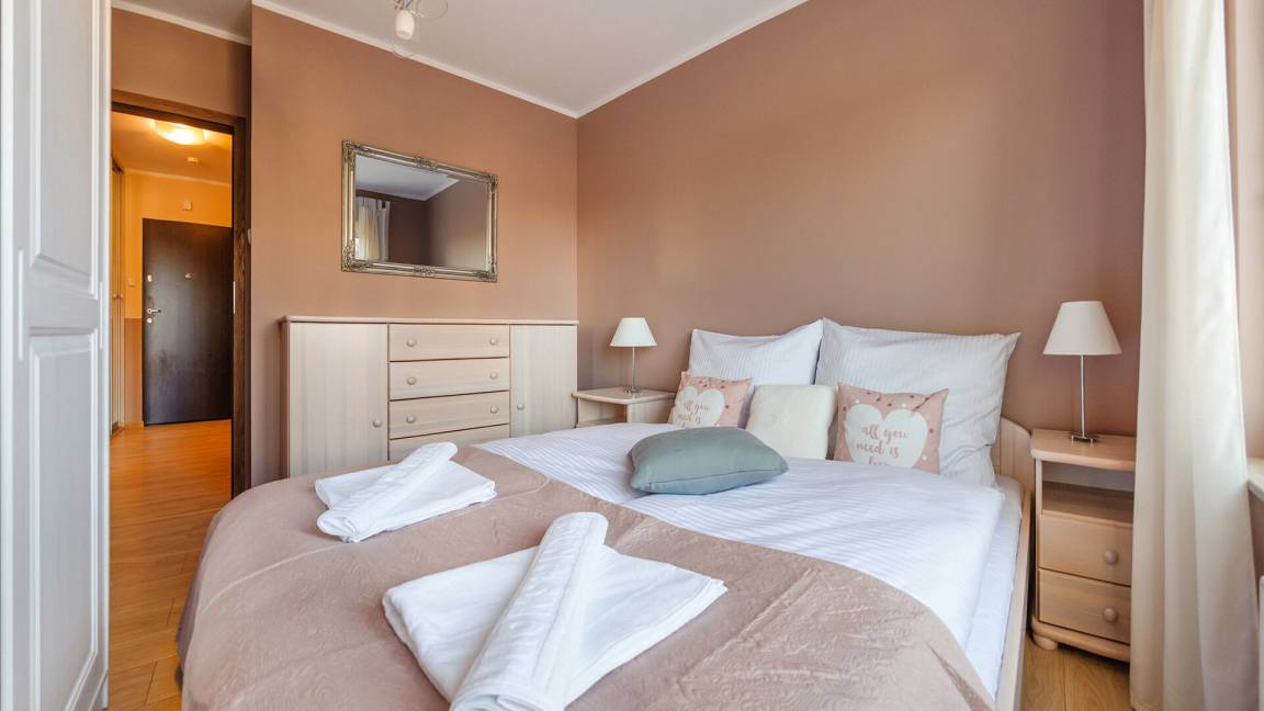• Haustiere sind in der ausgewählten Wohnung erlaubt. Die Kosten für den Aufenthalt mit einem Haustier betragen 40 PLN pro Tag.