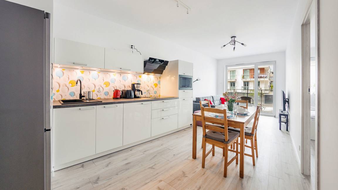 Wir bieten Ihnen moderne Apartments in der Wohnanlage „Osiedle Bursztynowe", gelegen in einer ruhigen und friedlichen Gegend von Kołobrzeg, in der Bałtycka-Straße. Die Nähe zum Fischereihafen sowie zum Küstenpark macht diesen Ort ideal für Erholung. Die Anlage ist bewacht, was unseren Gästen Sicherheit bietet.