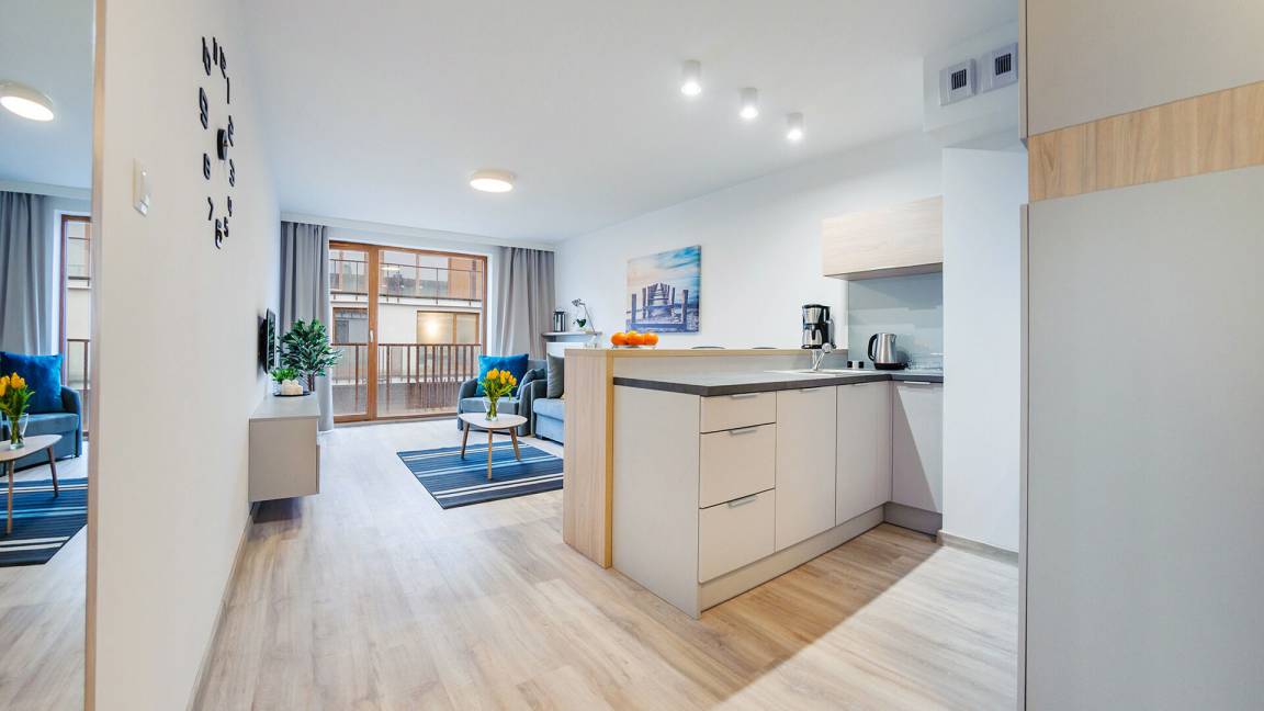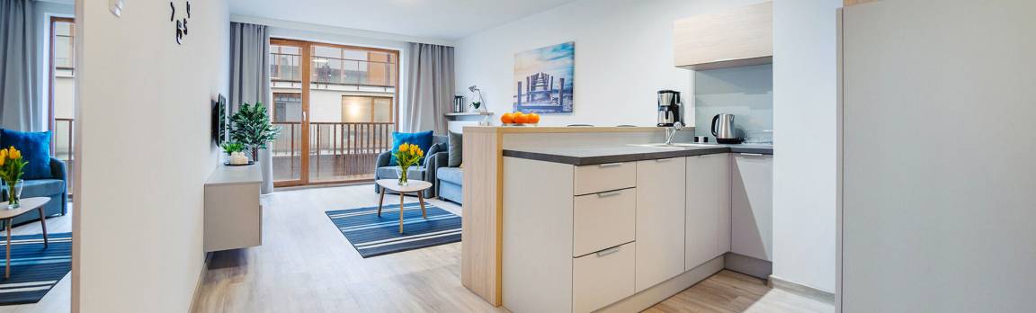 Die Apartments im Objekt Resorts Kołobrzeg befinden sich im westlichen Teil von Kołobrzeg, abseits des städtischen Trubels, umgeben vom Grün des NATURA-2000-Parks. Diese Lage garantiert saubere Luft, malerische Ausblicke und direkten Kontakt zur Natur. Die Plażowa-Straße mit ihren breiten Gehwegen und Radwegen ist ein Teil der R10-Fahrradroute. Ein fünfminütiger Spaziergang über einen direkten Zugang zum Meer reicht aus, um den breiten, sandigen „Weststrand" zu erreichen; ganz in der Nähe befindet sich auch ein Hundestrand. Alle Apartments sind hochwertig ausgestattet und verfügen über funktionale, voll ausgestattete Küchenzeilen sowie geräumige Terrassen mit Blick auf den Innenhof oder das Grün des NATURA-2000-Parks. Vor dem Gebäude gibt es einen öffentlichen, kostenpflichtigen Stadtparkplatz (begrenzte Anzahl an Stellplätzen). Auf dem Gelände stehen ein nummerierter Außenparkplatz sowie Parkplätze in der Tiefgarage zur Verfügung, die den meisten Apartments zugeordnet sind und gegen Aufpreis genutzt werden können. Im Objekt befindet sich ein Schwimmbad, das täglich von 10:00 bis 21:00 Uhr geöffnet ist, sowie eine Sauna, die täglich von 16:00 bis 21:00 Uhr geöffnet ist. Der Pool befindet sich im Gebäude A; aus Gebäude B gibt es keinen direkten Zugang zu Gebäude A.