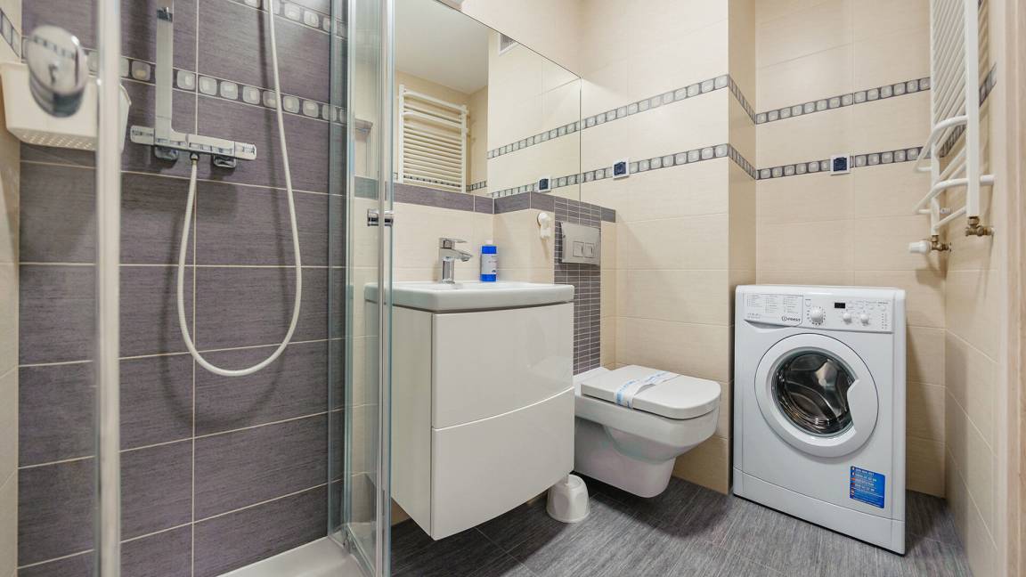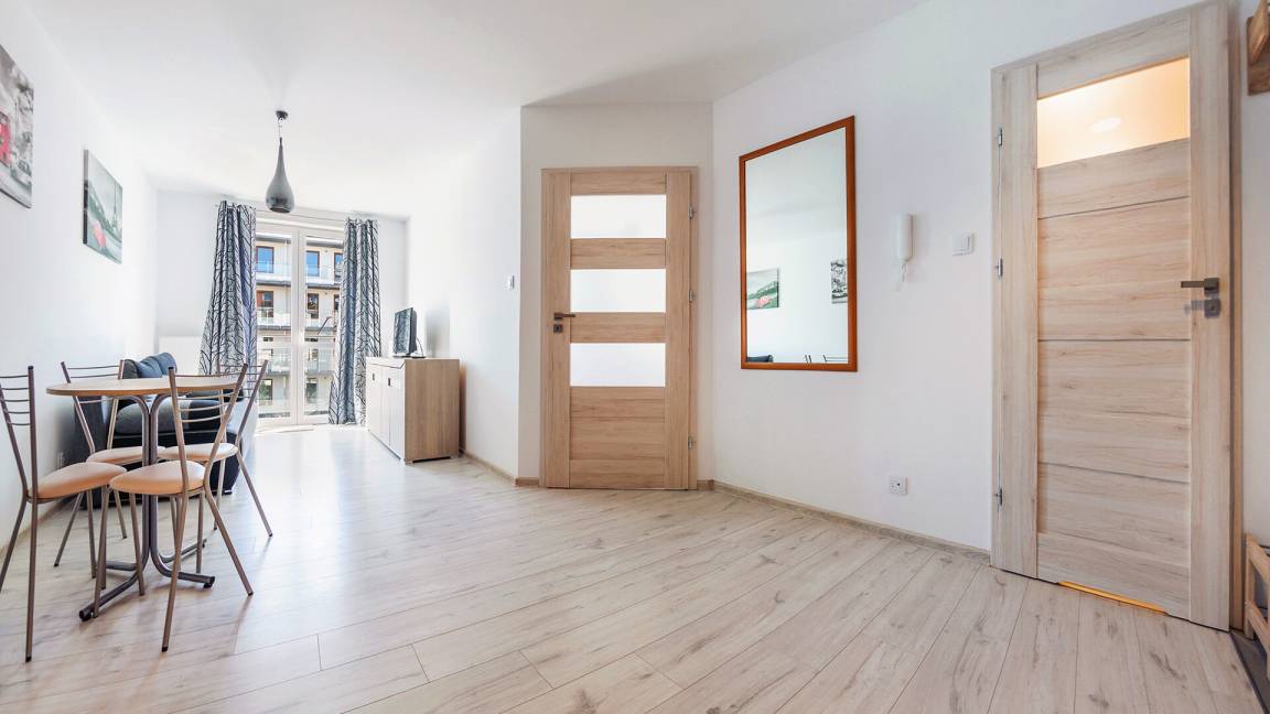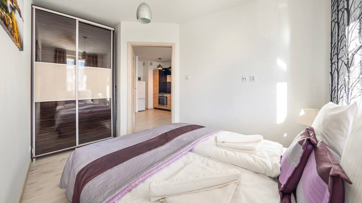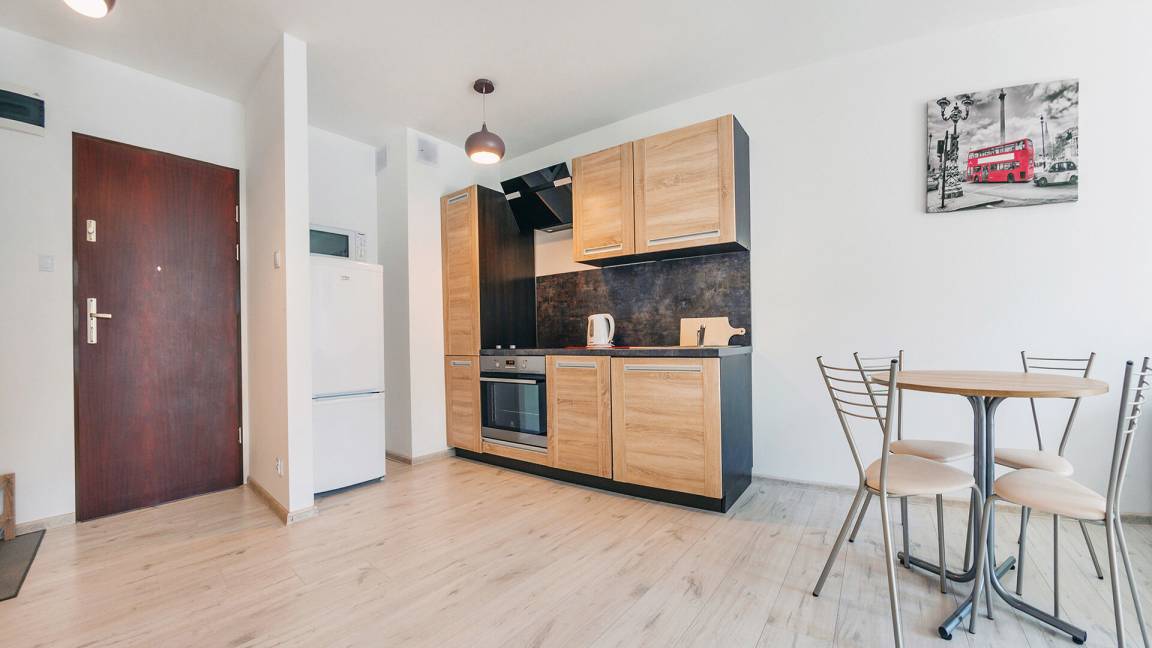 • Haustiere sind in der ausgewählten Wohnung erlaubt. Die Kosten für den Aufenthalt mit einem Haustier betragen 40 PLN pro Tag.