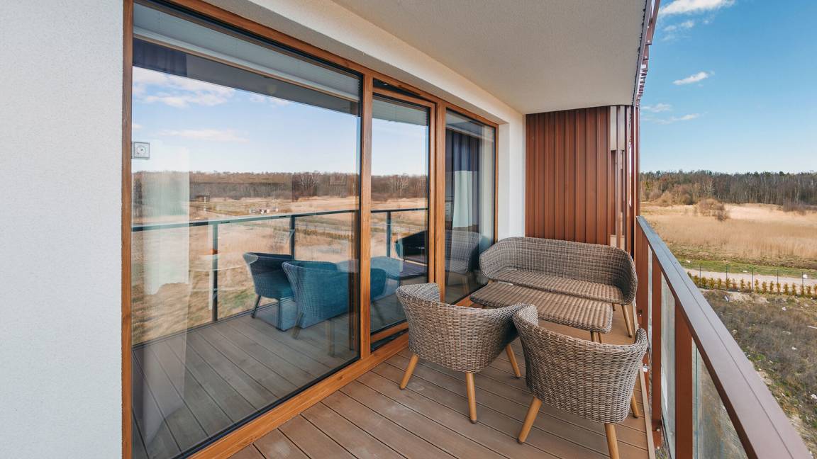 Die Apartments im Objekt Resorts Kołobrzeg befinden sich im westlichen Teil von Kołobrzeg, abseits des städtischen Trubels, umgeben vom Grün des NATURA-2000-Parks. Diese Lage garantiert saubere Luft, malerische Ausblicke und direkten Kontakt zur Natur. Die Plażowa-Straße mit ihren breiten Gehwegen und Radwegen ist ein Teil der R10-Fahrradroute. Ein fünfminütiger Spaziergang über einen direkten Zugang zum Meer reicht aus, um den breiten, sandigen „Weststrand" zu erreichen; ganz in der Nähe befindet sich auch ein Hundestrand. Alle Apartments sind hochwertig ausgestattet und verfügen über funktionale, voll ausgestattete Küchenzeilen sowie geräumige Terrassen mit Blick auf den Innenhof oder das Grün des NATURA-2000-Parks. Vor dem Gebäude gibt es einen öffentlichen, kostenpflichtigen Stadtparkplatz (begrenzte Anzahl an Stellplätzen). Auf dem Gelände stehen ein nummerierter Außenparkplatz sowie Parkplätze in der Tiefgarage zur Verfügung, die den meisten Apartments zugeordnet sind und gegen Aufpreis genutzt werden können. Im Objekt befindet sich ein Schwimmbad, das täglich von 10:00 bis 21:00 Uhr geöffnet ist, sowie eine Sauna, die täglich von 16:00 bis 21:00 Uhr geöffnet ist. Der Pool befindet sich im Gebäude A; aus Gebäude B gibt es keinen direkten Zugang zu Gebäude A.